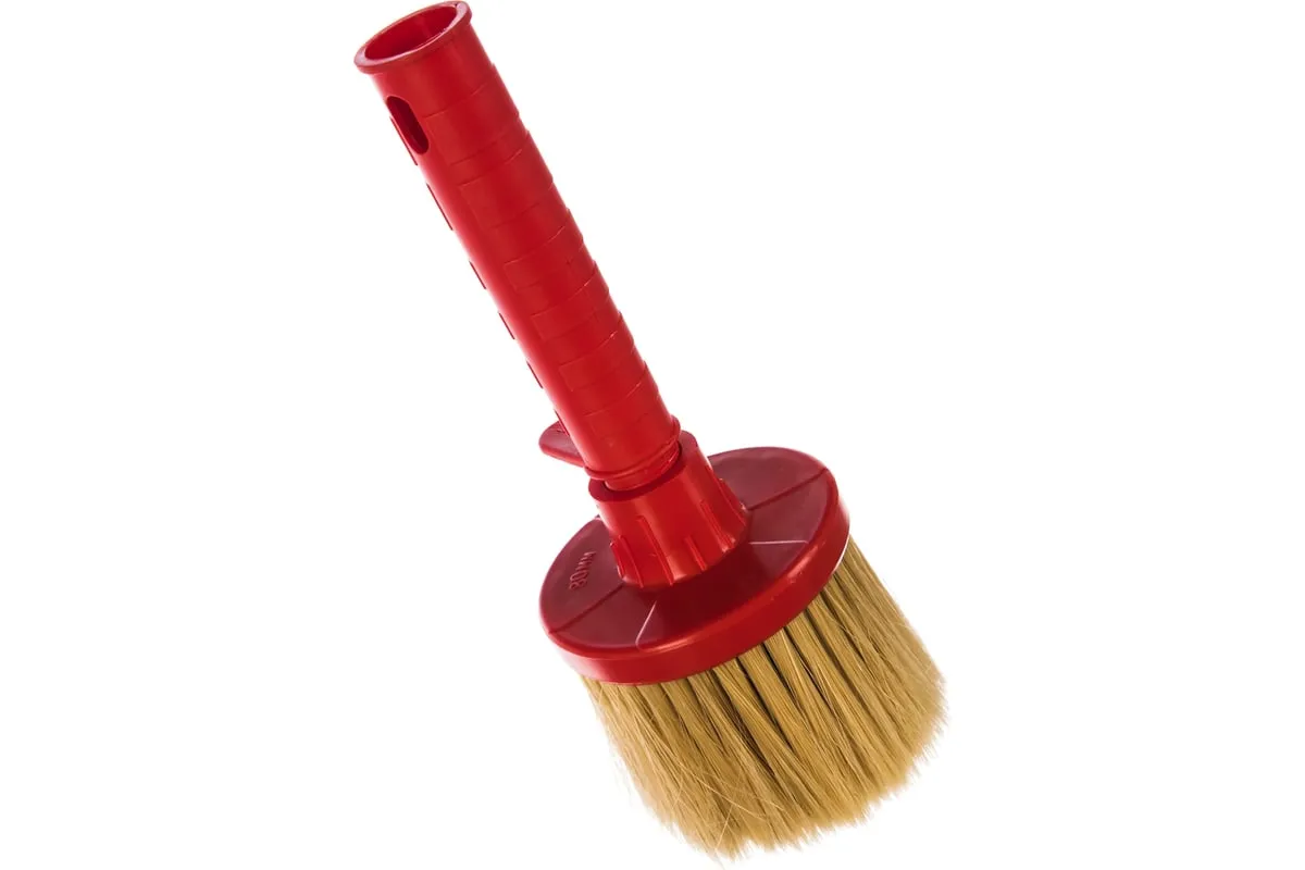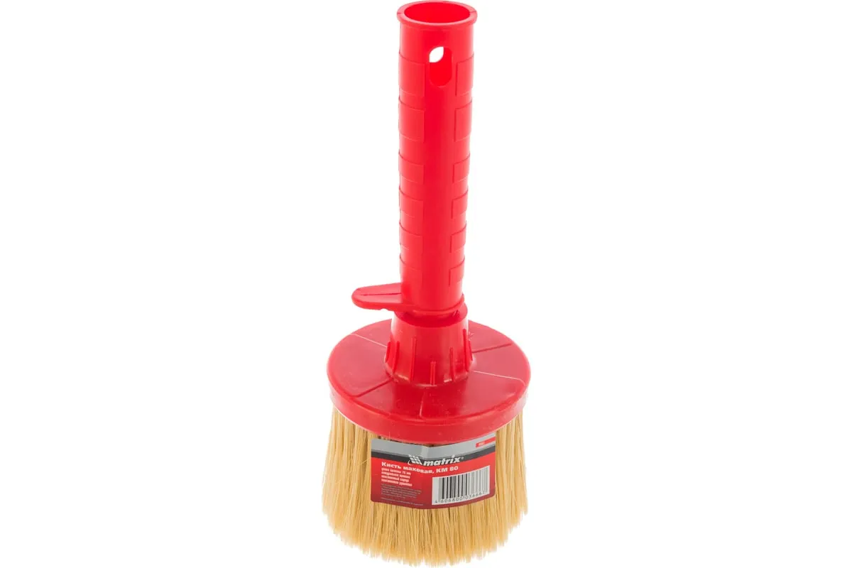 Маховая кисть Matrix KM 80 84007 с натуральной щетиной, пластиковыми корпусом и ручкой, используется для нанесения краски, побелки или грунтовки на поверхности большой площади. Круглый пучок кустовой набивки позволяет наносить лакокрасочный материал плотным слоем. В составе пучка преимущественно натуральная щетина, поэтому кисть устойчива к износу и не теряет упругости при длительном использовании.