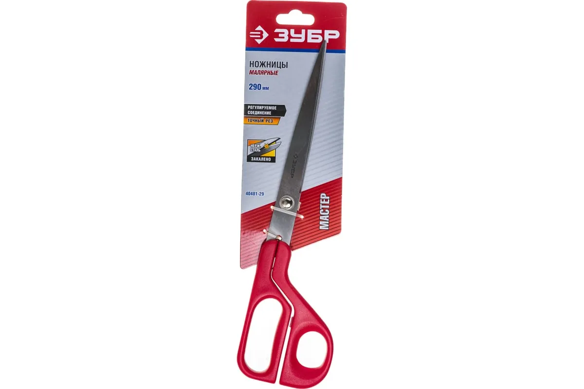 Малярные ножницы 290мм ЗУБР МАСТЕР 40481-29 отлично справляются с разрезанием тонких рулонных и листовых материалов. Инструмент изготовлен из нержавеющей стали, поэтому имеет долгий срок службы. Благодаря высокой заточке на высокоточных станках, повышаются режущие свойства лезвий и обеспечивается плавность реза при минимальных усилиях. Длина лезвия - 130мм