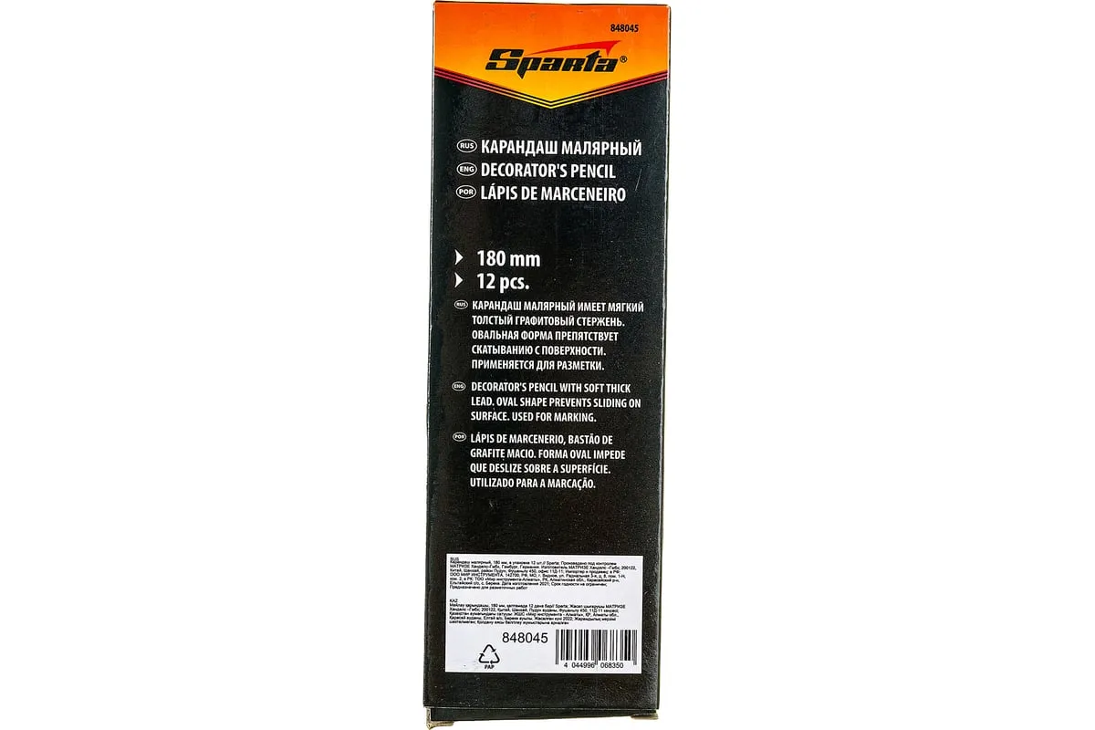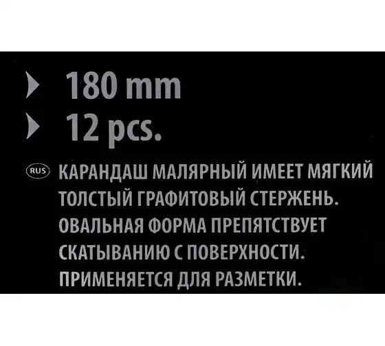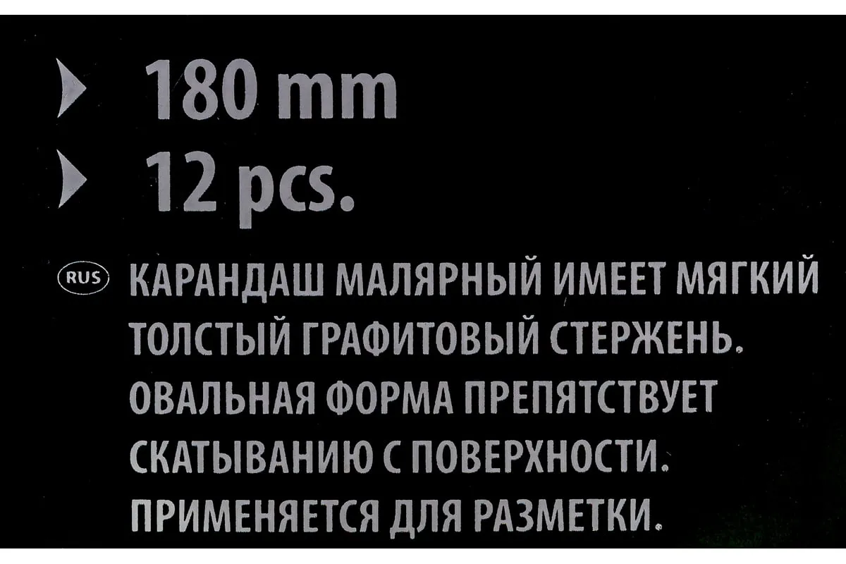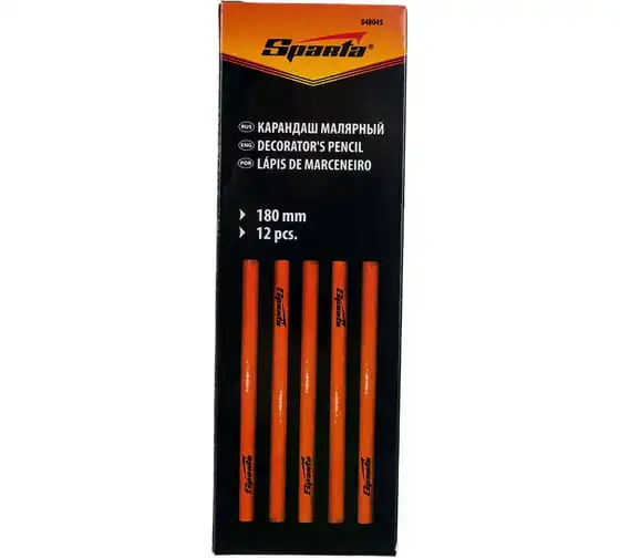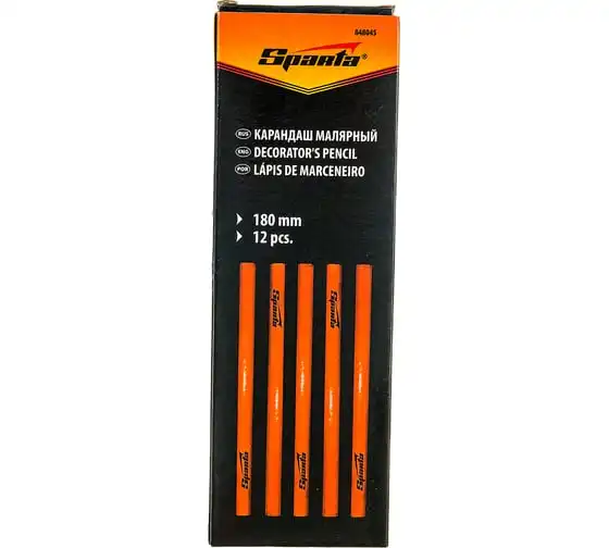 Малярный карандаш SPARTA 180 мм, в упаковке 12 шт. 848045 используется для разметки при строительных работах. Имеет мягкий грифель, который оставляет четкий след. Специальная форма карандаша исключает скатывание с наклонной поверхности.
