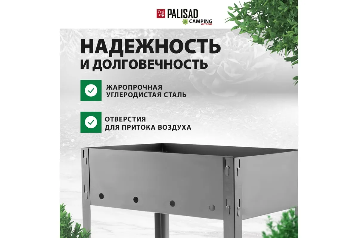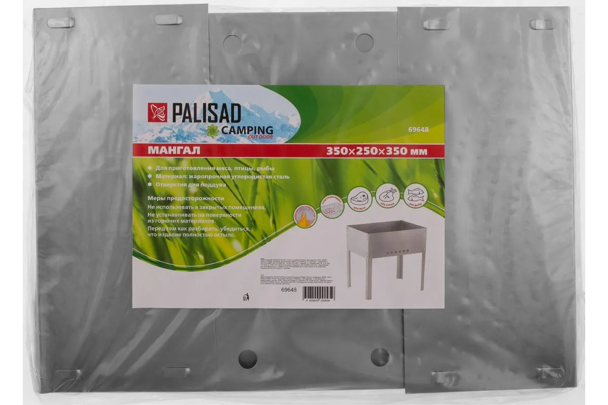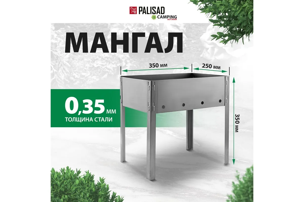 Мангал PALISAD Camping эконом 350x250x350 мм 69648 используется для приготовления жареного мяса, рыбы, птицы или овощей. Благодаря компактным размерам и сборно-разборной конструкции мангалудобно брать на пикник, в поход или на дачу. Рекомендуется дополнительно приобрести веер для раздувания углей Palisad Camping 69542.
