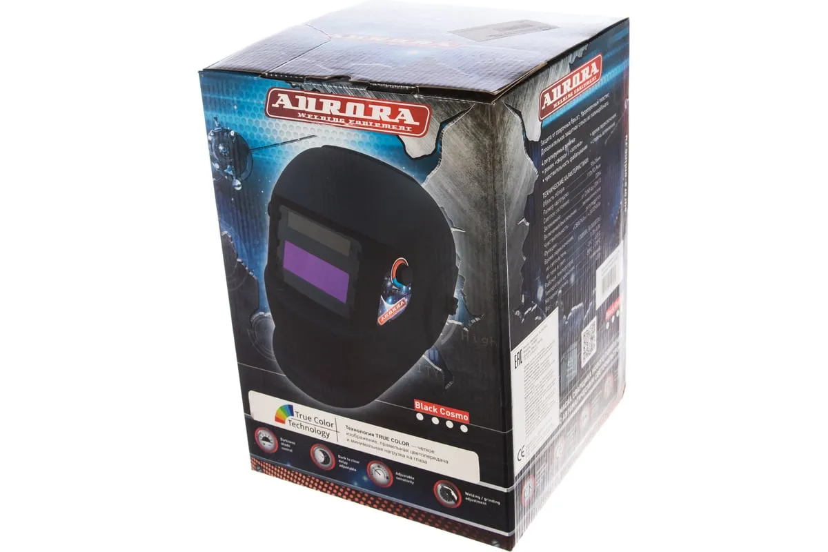 Щиток AURORA BLACK COSMO сделан из высококачественного негорючего и ударопрочного полиамида, который предотвращает прилипание сварочных брызг.