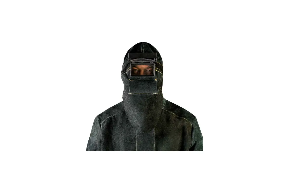 Маска сварщика из спилка подходит для проведения сварочных работ в труднодоступных зонах. Плотно прилегает к голове за счет универсального крепления и хорошо защищает голову и шею.
