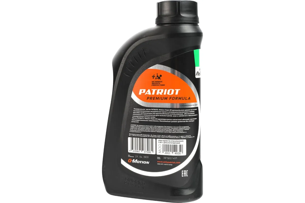 Масло цепное G-Motion Chain Oil 1 л PATRIOT 850030700 изготовлено на основе минеральных масел высокого качества и усовершенствованного пакета присадок. Рекомендовано для круглогодичного использования, гарантирует смазывание и повышение ресурса пильных цепей, шин и звёздочек в бензиновых и электрических цепных пилах.