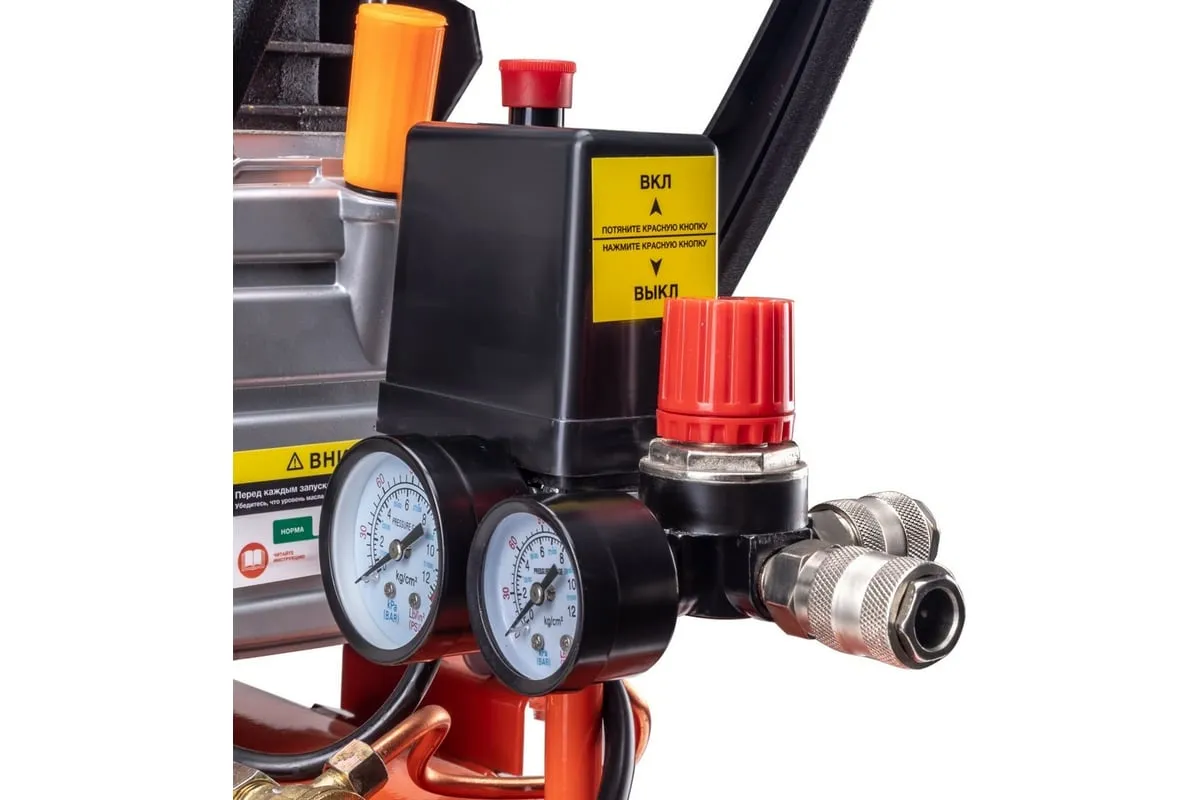 Масляный коаксиальный компрессор FOXWELD AERO 220/24 - воздушный поршневой масляный коаксиальный компрессор, обладающий повышенной производительностью и длительным сроком службы. Все металлические детали поршневого механизма покрыты масляной пленкой, которая предотвращает их износ и повреждение узлов при контакте друг с другом. Модель масляного коаксиального компрессора с производительностью 220 л/мин подходит для работы с большинством типов пневмоинструментов и для накачки шин. Нетребовательный к условиям эксплуатации агрегат может использоваться дома, в гараже, на открытом воздухе. Он уверенно запускается в условиях пониженного сетевого напряжения от 175 В, а для удобства транспортировки оснащен компактной ручкой и колесами. Для длительной работы достаточно поддерживать нужный уровень масла и снижать конденсат из ресивера.