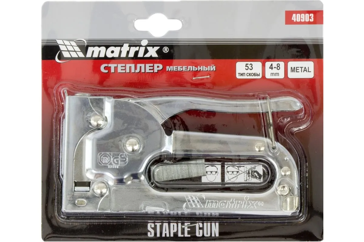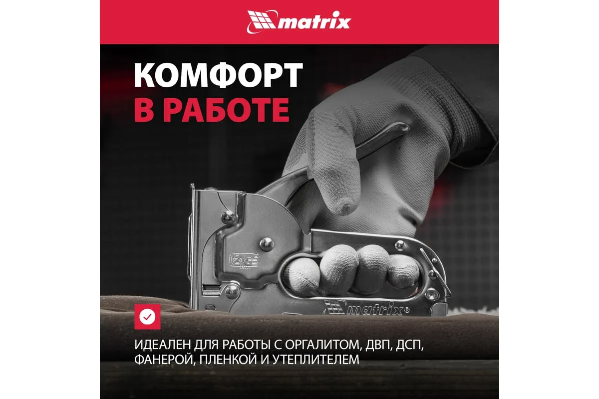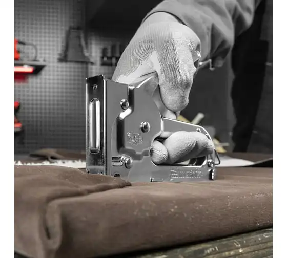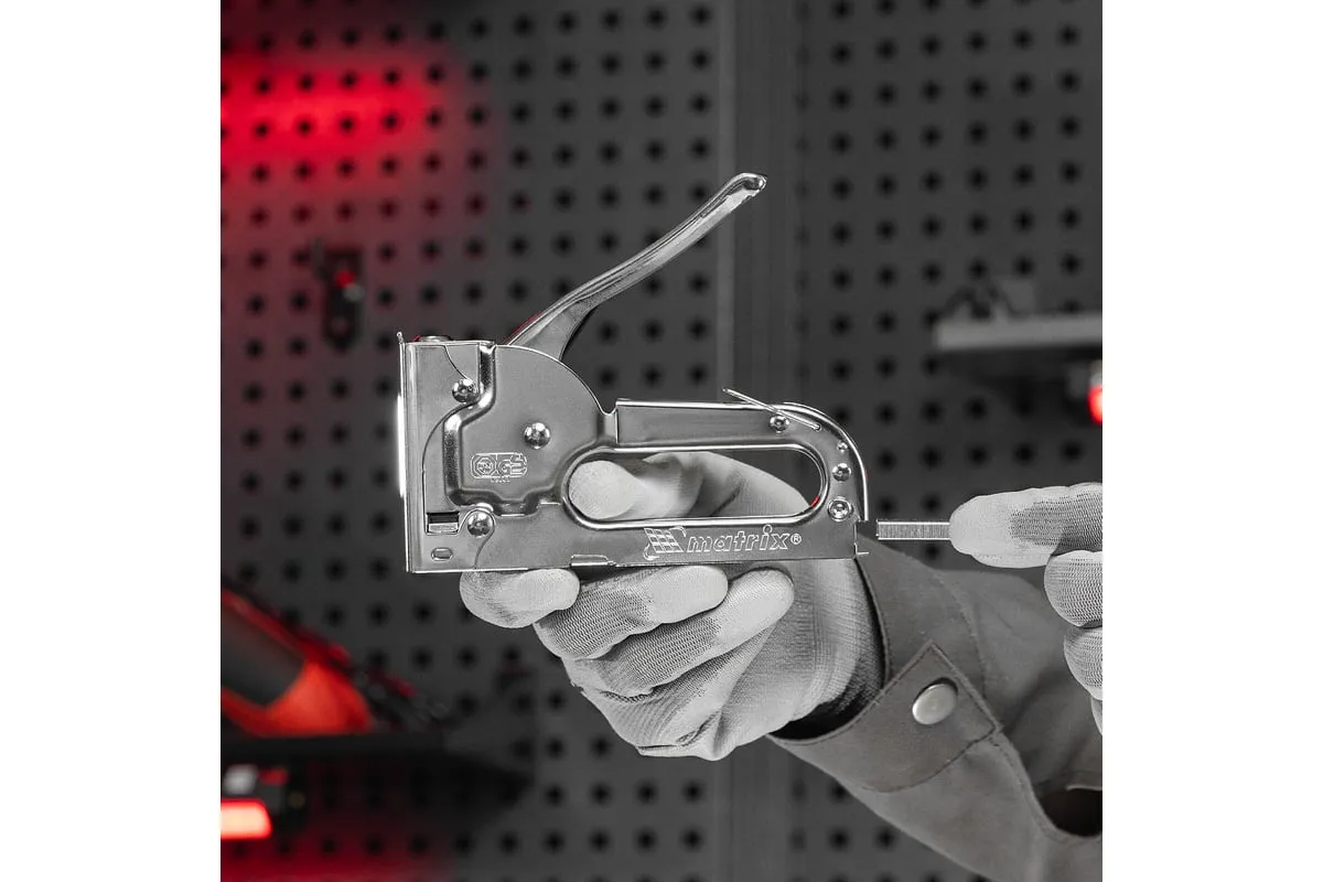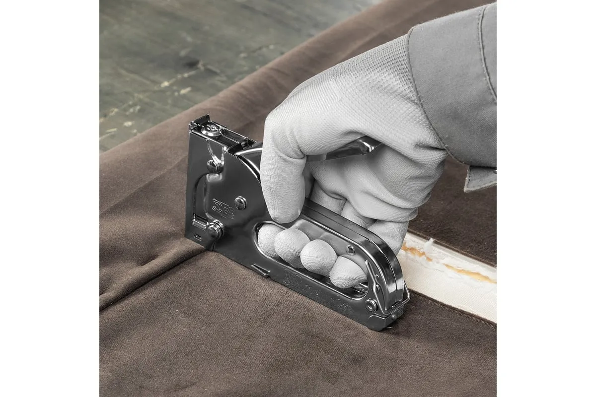 Мебельный степлер MATRIX MASTER 40903 применяется для обивки мебели и других конструкций. Может использоваться для прибивания тонких материалов к деревянным заготовкам при использовании коротких скоб. Степлер очень удобен и эффективен в работе. Он обладает повышенным рабочим ресурсом за счет использования для его изготовления качественных материалов.
