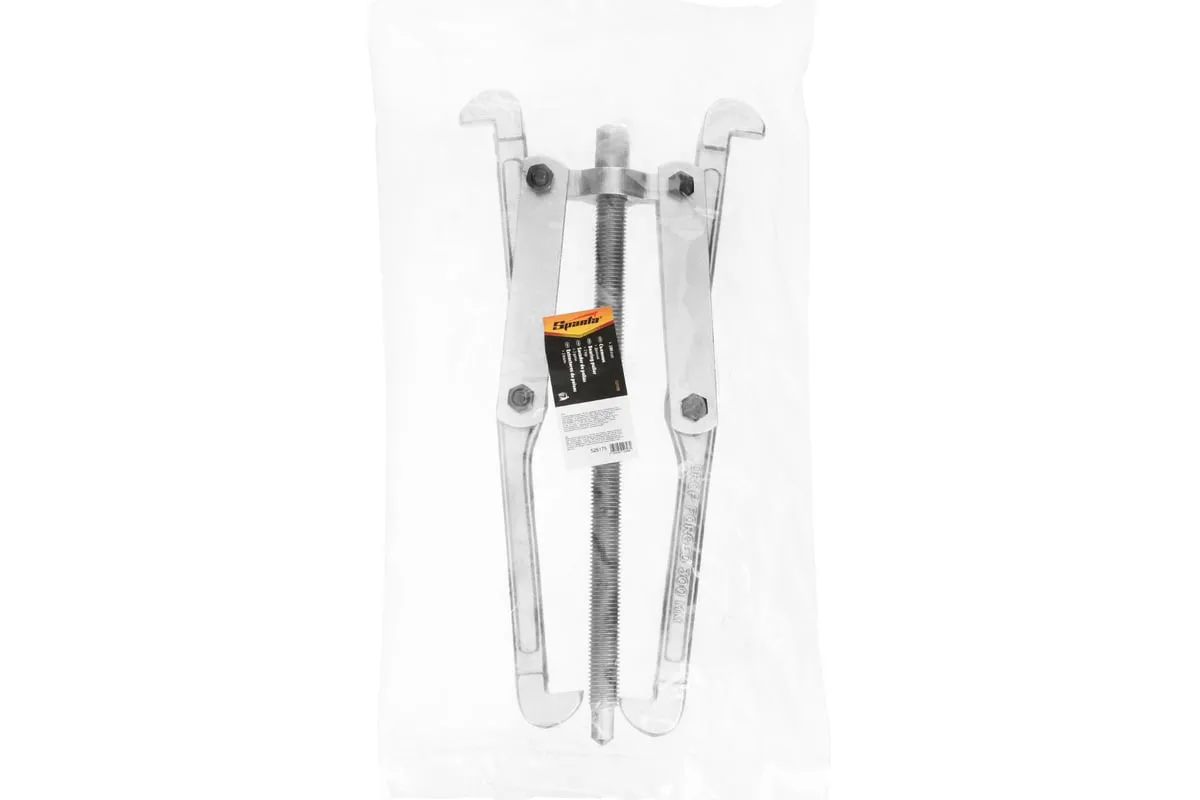 Механический двойной съемник 300 мм SPARTA 525175 состоит из металлического стержня с шестигранным наконечником и двух поворотных лапок, упоры которых имеют одинаковую ширину. Используется для фиксации и снятия подшипников, колец или шестерен. Длина инструмента составляет 30 см.