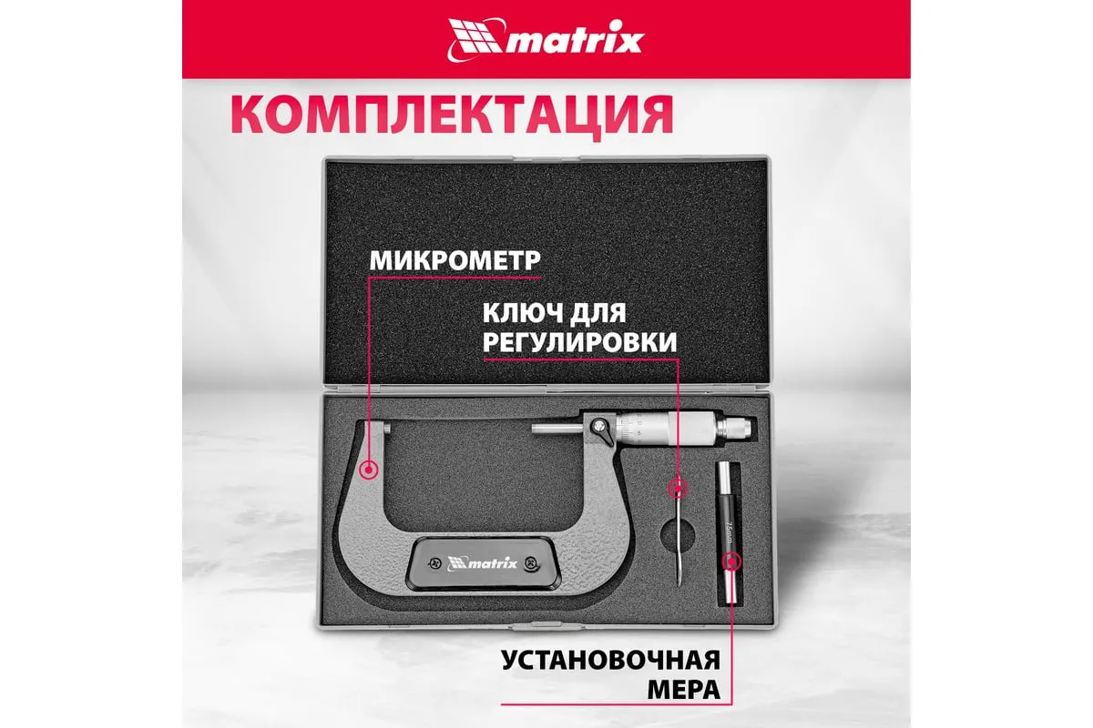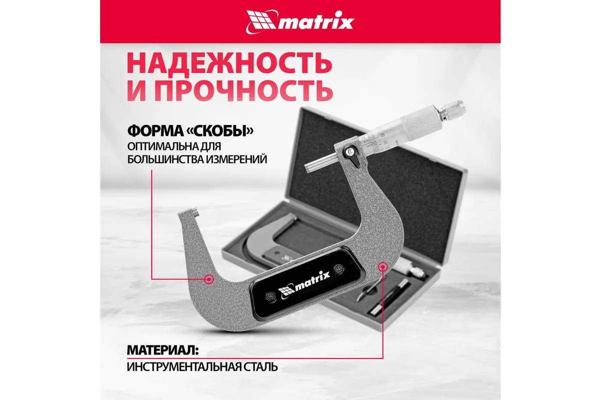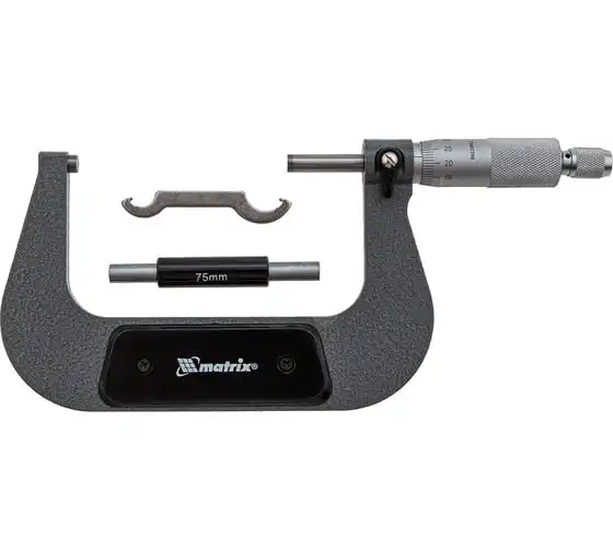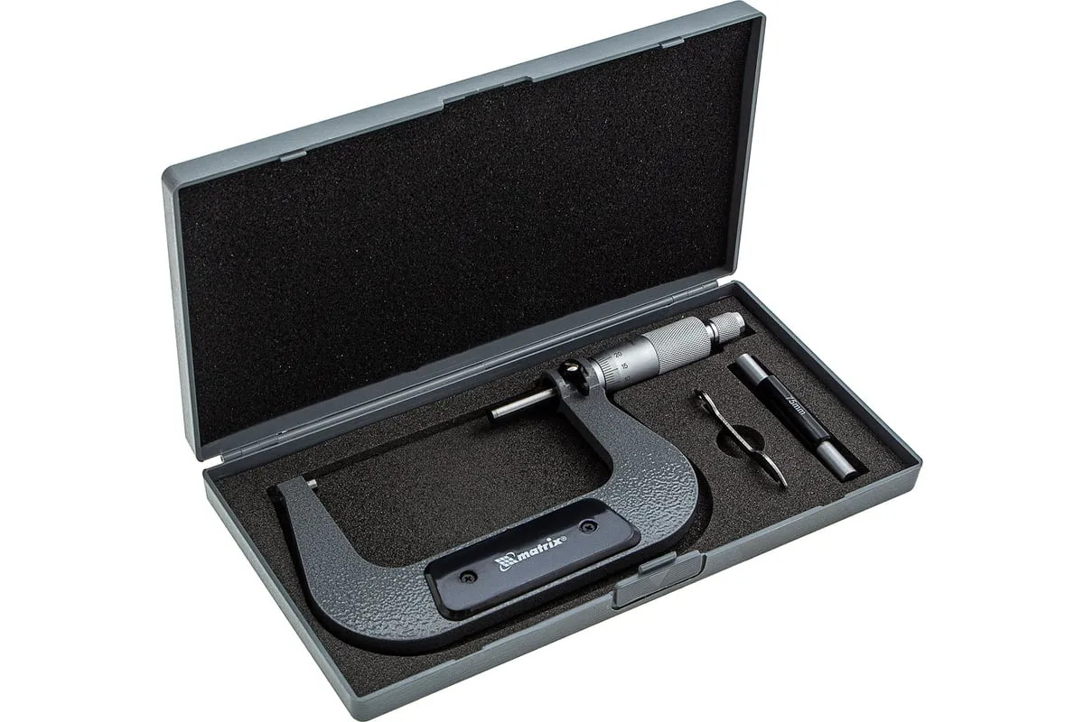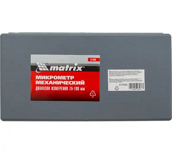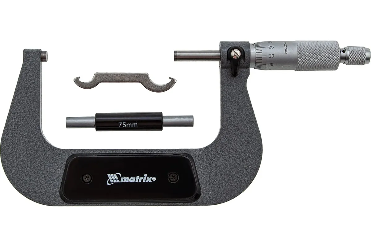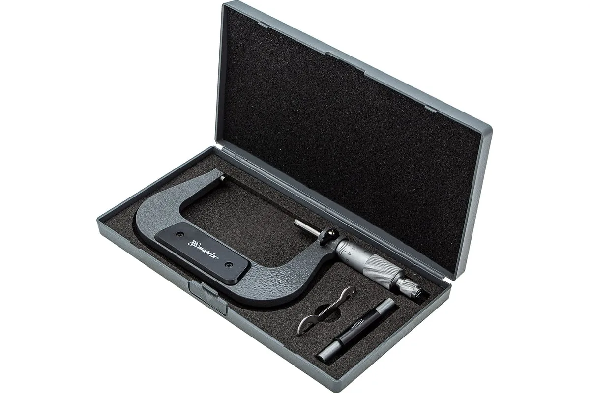 Механический микрометр MATRIX 317005 служит для выполнения особо точных измерений. Корпус выполнен в форме скобы и изготовлен из высокопрочной инструментальной стали, что определяет долговечность и надежность данного инструмента.
