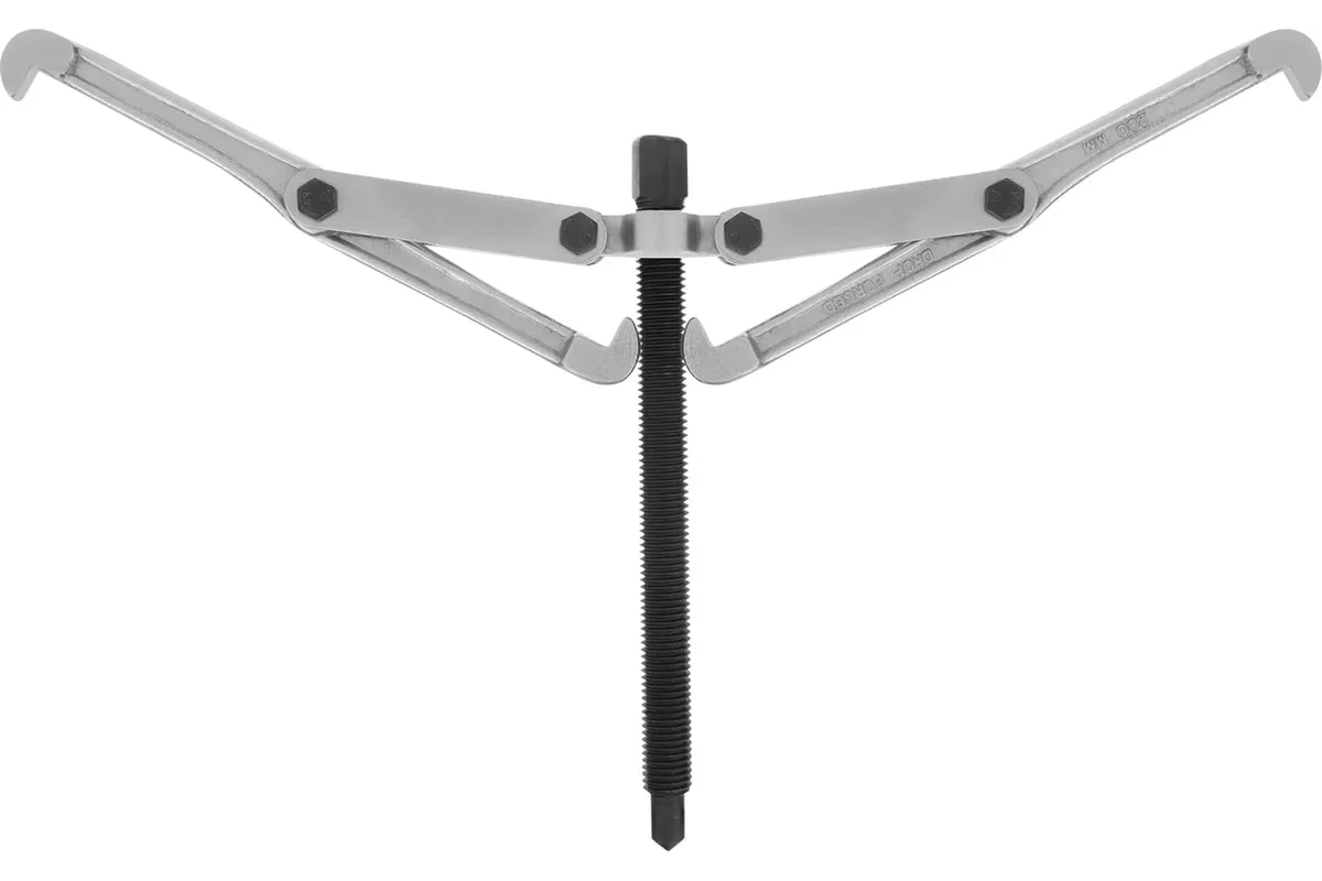 Механический съемник SPARTA 250 мм, двойной 525165 оснащен двумя поворотными двухсторонними захватами и силовым болтом с шестигранным наконечником. Упоры на лапах имеют одинаковую ширину. При перестановке захватов, их вылет меняется приблизительно в 1,5 раза.