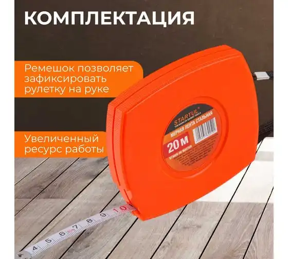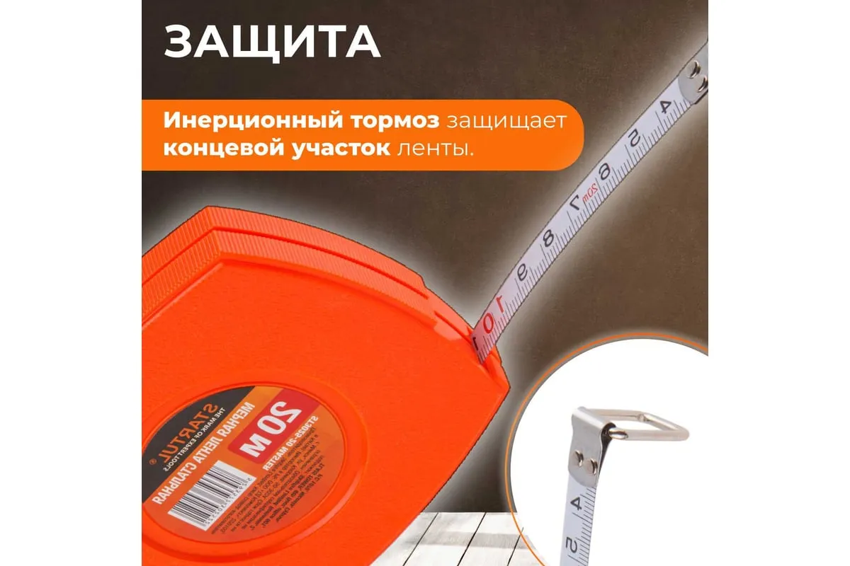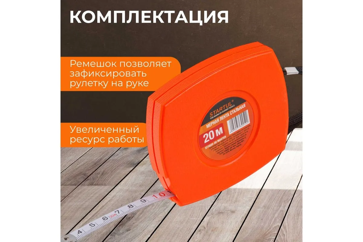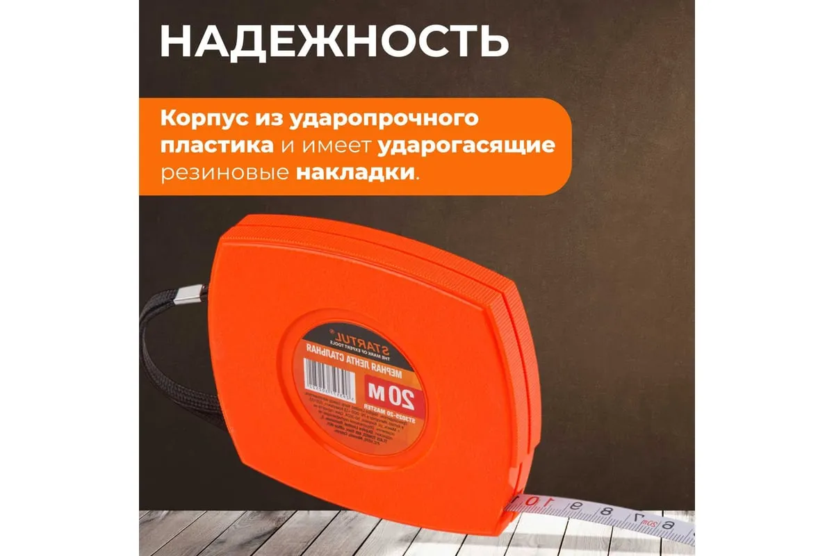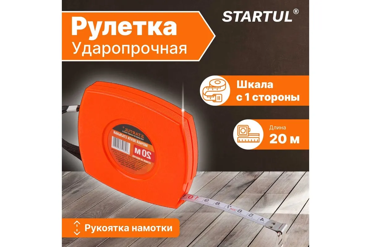 Мерная лента STARTUL 20 м ST3025-20 применяется для измерения расстояний. Полотно выполнено из прочной и качественной стали. Корпус из упрочненной пластмассы обеспечивает продолжительный срок службы изделия.