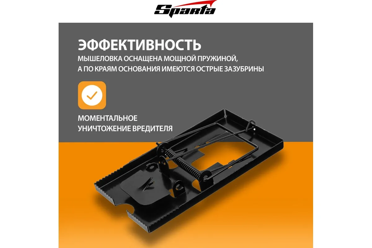Металлическая усиленная мышеловка SPARTA 93888 предназначена для ловли грызунов - крыс и мышей. Занимает немного места и может использоваться не только на даче, но и дома.