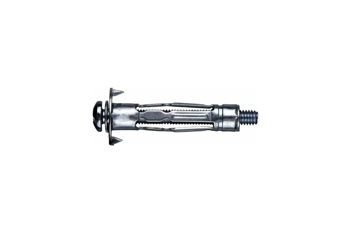 Металлический дюбель для пустотелых конструкций STARFIX 5x52 мм SMP-62892-1 позволяет прикрепить различные элементы к листовым стройматериалам, а также к материалам с пустотами. Два острых зубца дюбеля не позволяют ему прокручиваться при монтаже.