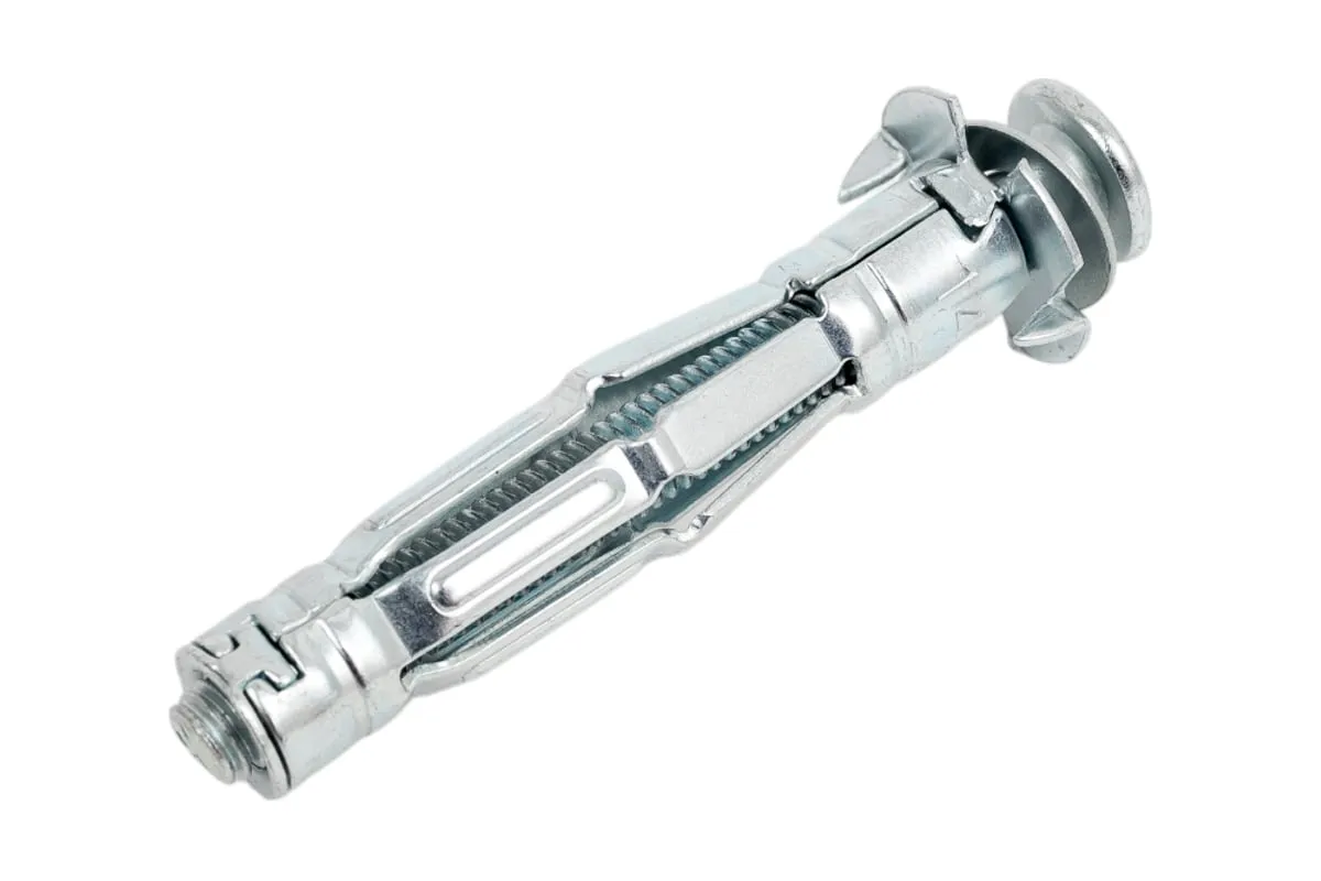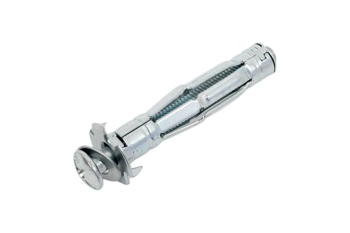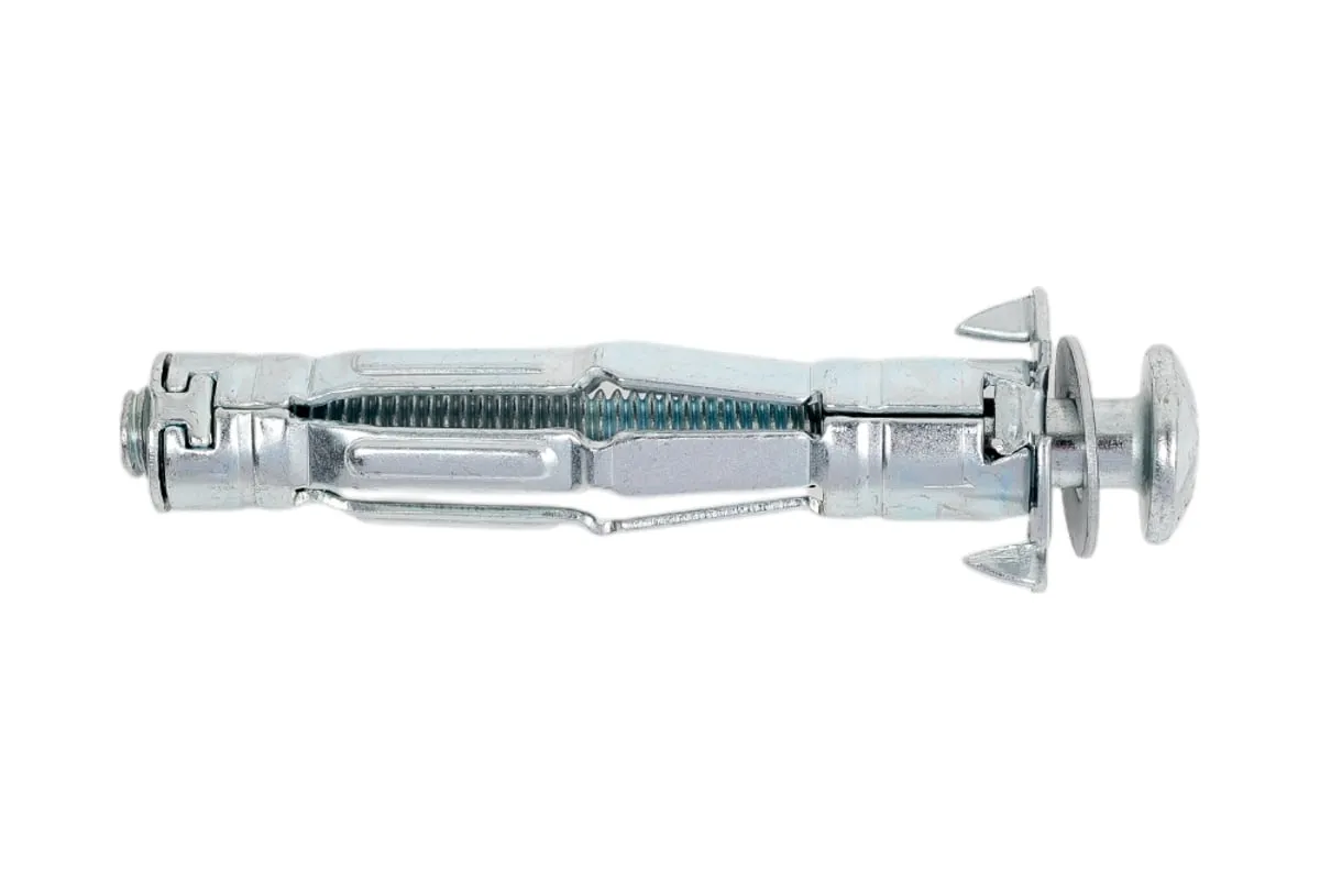 Металлический дюбель для пустотелых конструкций STARFIX 6x52 мм SMP-63892-1 позволяет прикрепить различные элементы к листовым стройматериалам, а также к материалам с пустотами. Два острых зубца дюбеля не позволяют ему прокручиваться при монтаже.