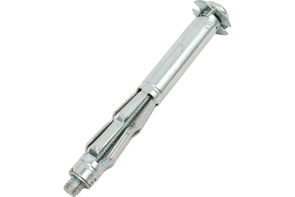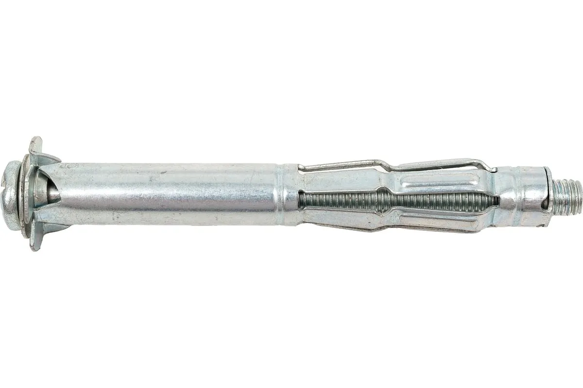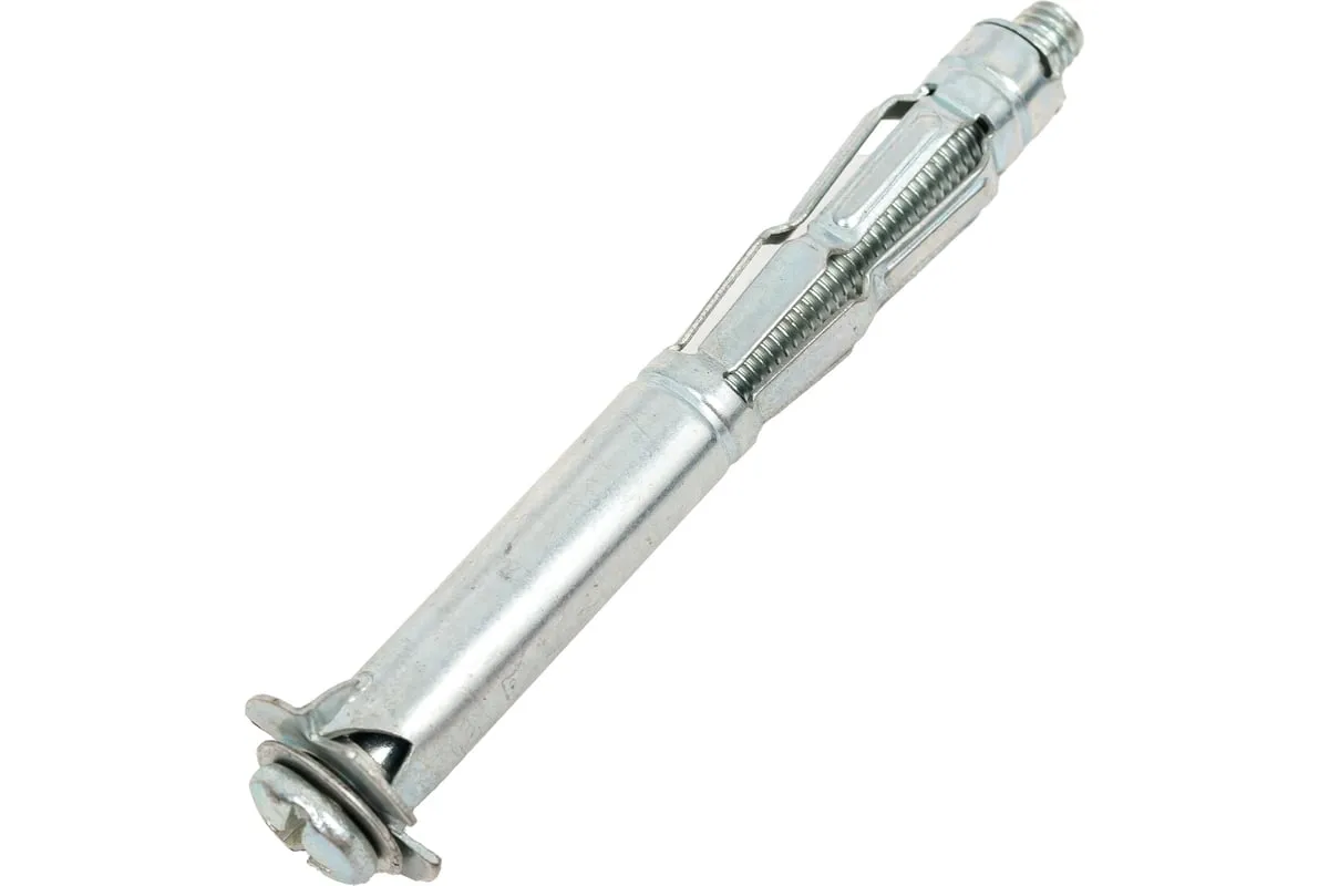 Металлический дюбель для пустотелых конструкций STARFIX 6x80 мм SMP-63920-1 позволяет прикрепить различные элементы к листовым стройматериалам, а также к материалам с пустотами. Два острых зубца дюбеля не позволяют ему прокручиваться при монтаже.