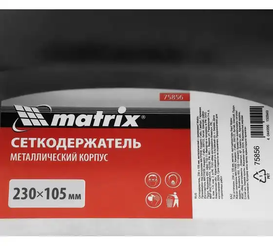 Сеткодержатель Matrix 75856, 230 х 105 мм, металлический с зажимами, используется для ручного шлифования деревянных, шпатлеванных, металлических, пластмассовых и прочих твердых поверхностей. Сеткодержатель фиксирует абразивную стеклосетку или шлифлист и позволяет удалять старые отделочные покрытия, подготавливать поверхность под покраску, а также выполнять чистовую обработку.
