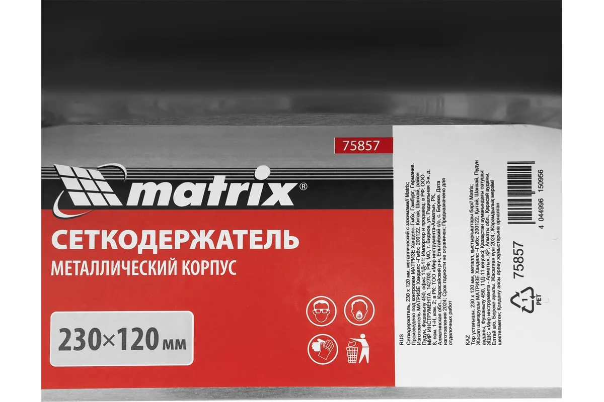Сеткодержатель Matrix 75857, 230 х 120 мм, металлический с зажимами, используется для ручного шлифования деревянных, шпатлеванных, металлических, пластмассовых и прочих твердых поверхностей. Сеткодержатель фиксирует абразивную стеклосетку или шлифлист и позволяет удалять старые отделочные покрытия, подготавливать поверхность под покраску, а также выполнять чистовую обработку.