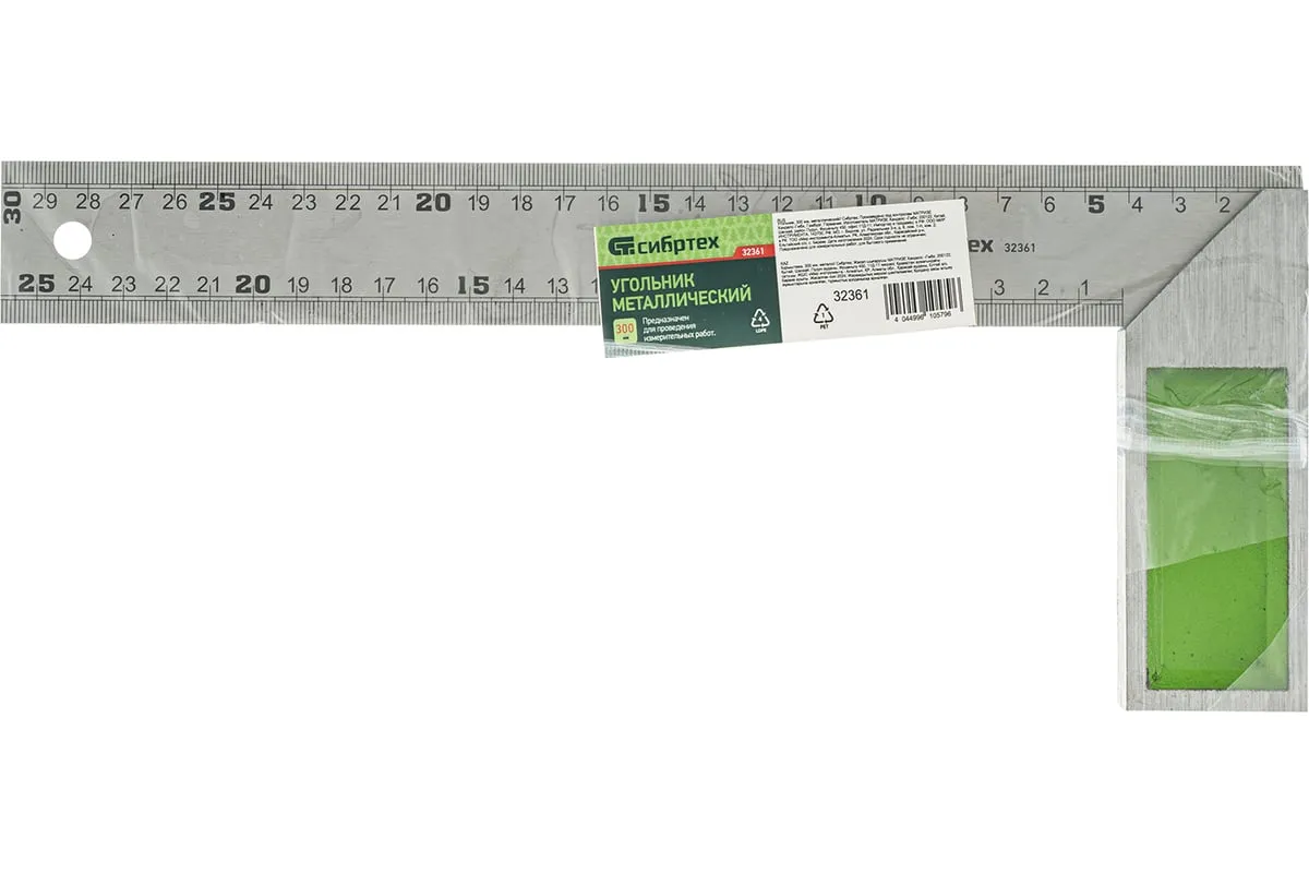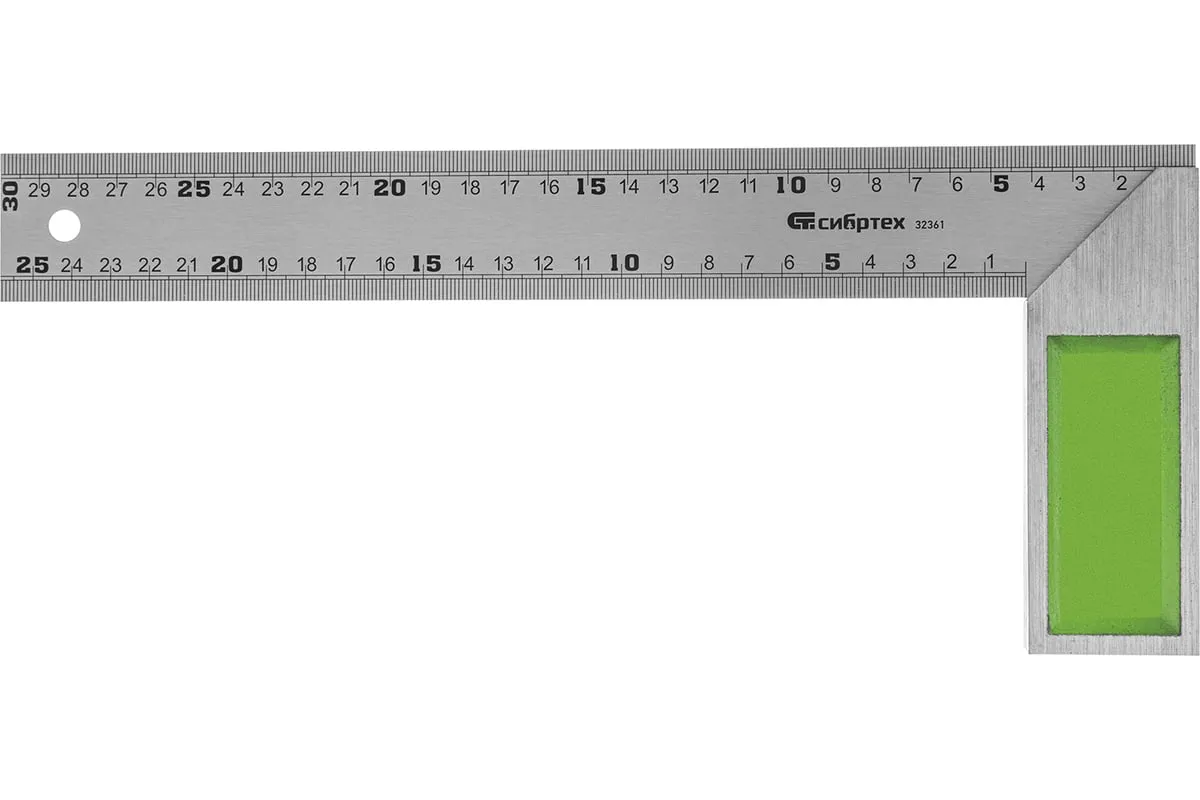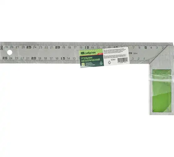 Металлический угольник Сибртех 32361 длиной 300 мм предназначен для разметки и проверки прямых углов, а также для проверки угла 45° при обработке и сборке изделий. Мерительная плоскость с метрической шкалой выполнена методом травления. Используется также для разметки поверхностей во время строительных и столярных работ Толщина линейки 0,75 мм.