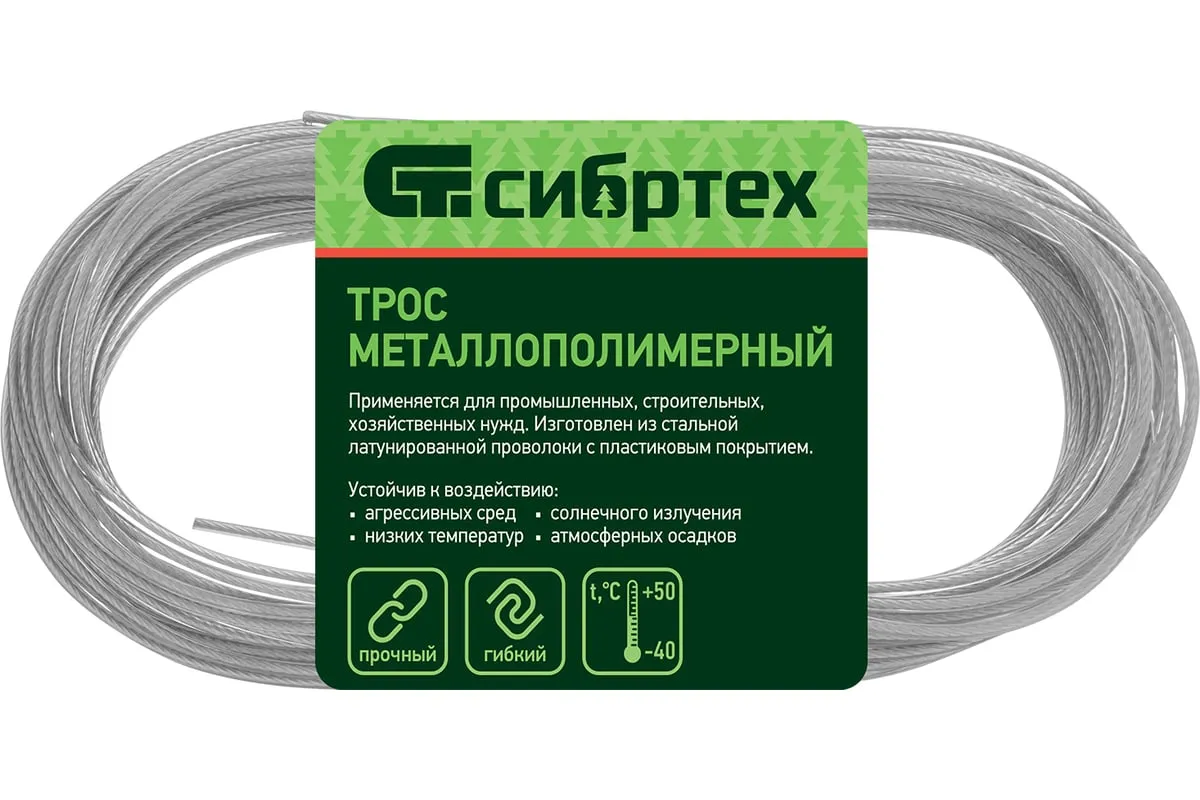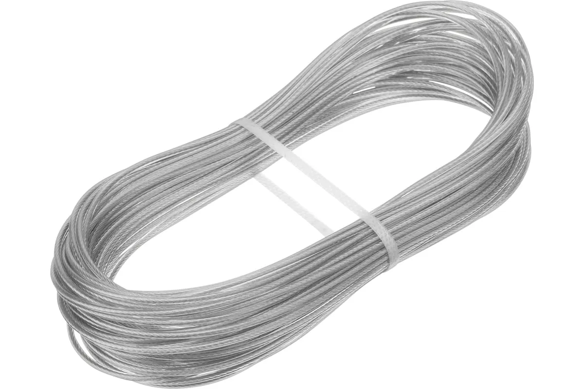 Трос изготовлен из стальной латунированной проволоки и покрыт пластикатом ПВХ методом экструзии, что делает его более устойчивым к окислению.В зависимости от диаметра выдерживает значительные разрывные нагрузки.Применяется при погружении насосов и датчиков в скважины, колодцы, в качестве несущего элемента различных строительных конструкции.Используется при изготовлении рекламных растяжек, для лучшей декоративности предлагается в нескольких цветах.