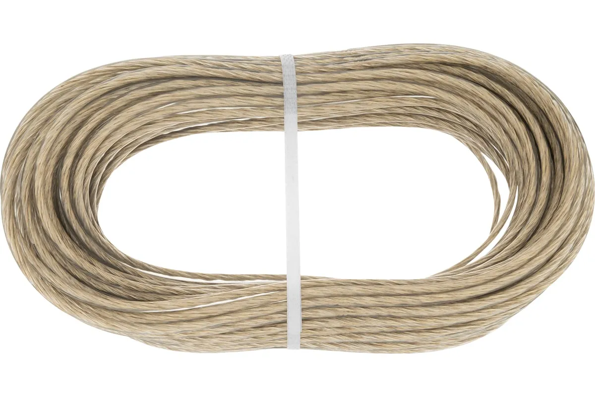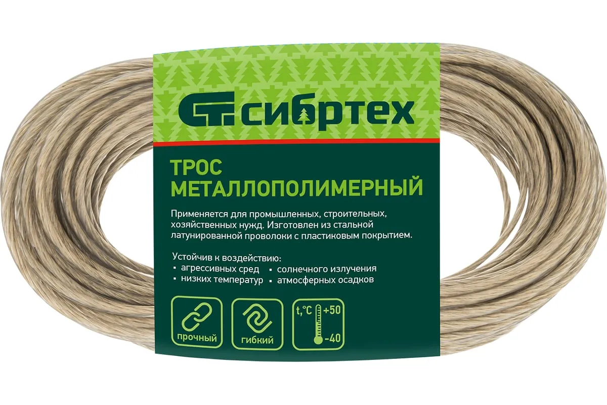 Трос изготовлен из стальной латунированной проволоки и покрыт пластикатом ПВХ методом экструзии, что делает его более устойчивым к окислению.В зависимости от диаметра выдерживает значительные разрывные нагрузки.Применяется при погружении насосов и датчиков в скважины, колодцы, в качестве несущего элемента различных строительных конструкции.Используется при изготовлении рекламных растяжек, для лучшей декоративности предлагается в нескольких цветах.