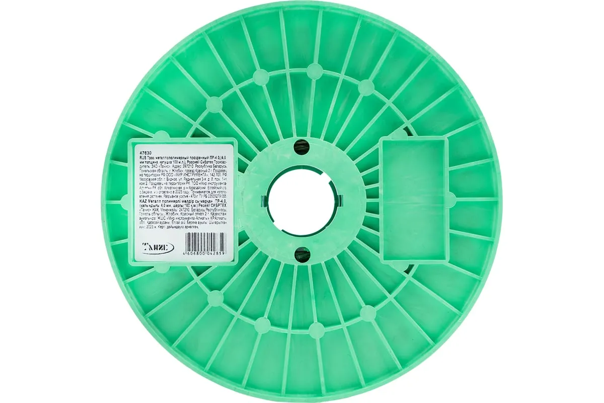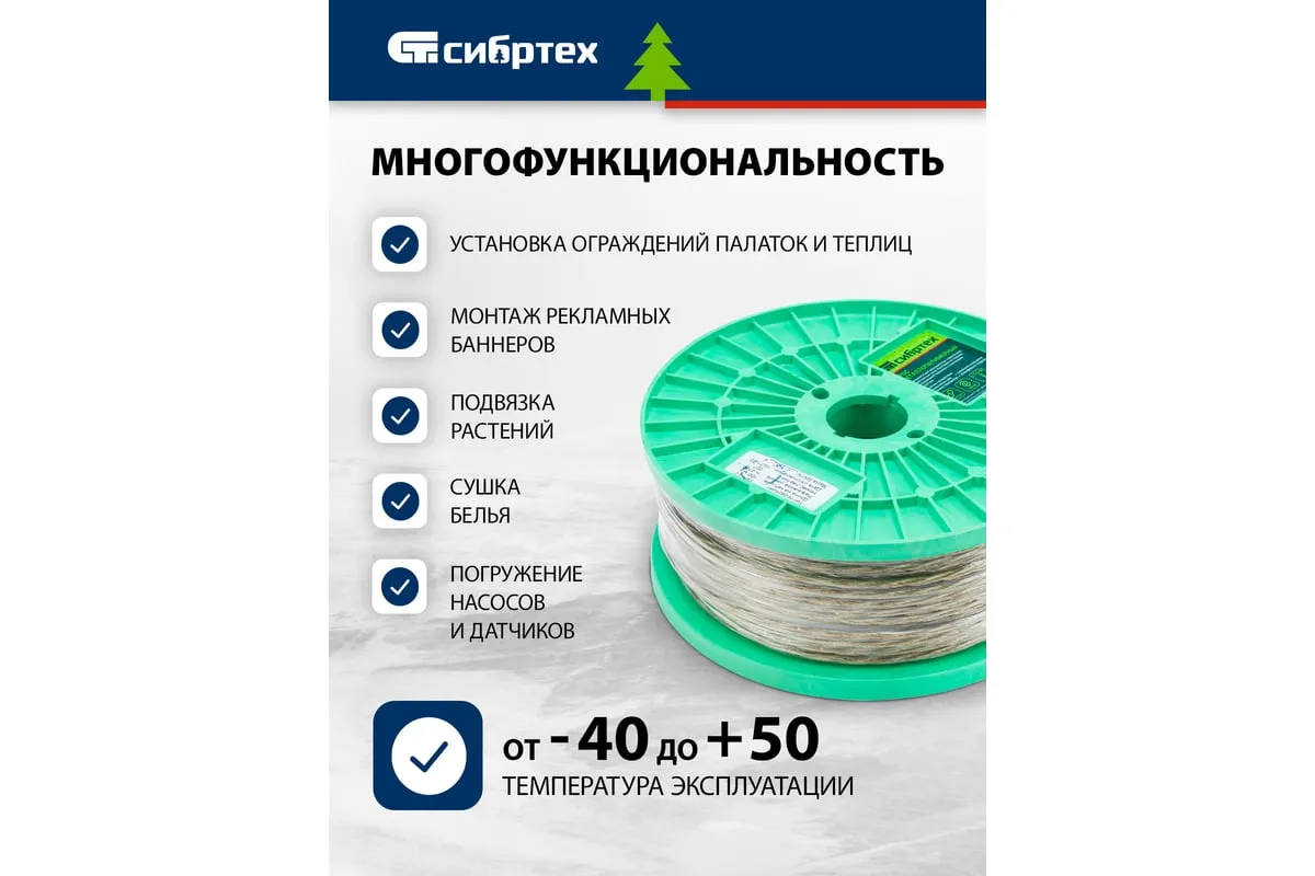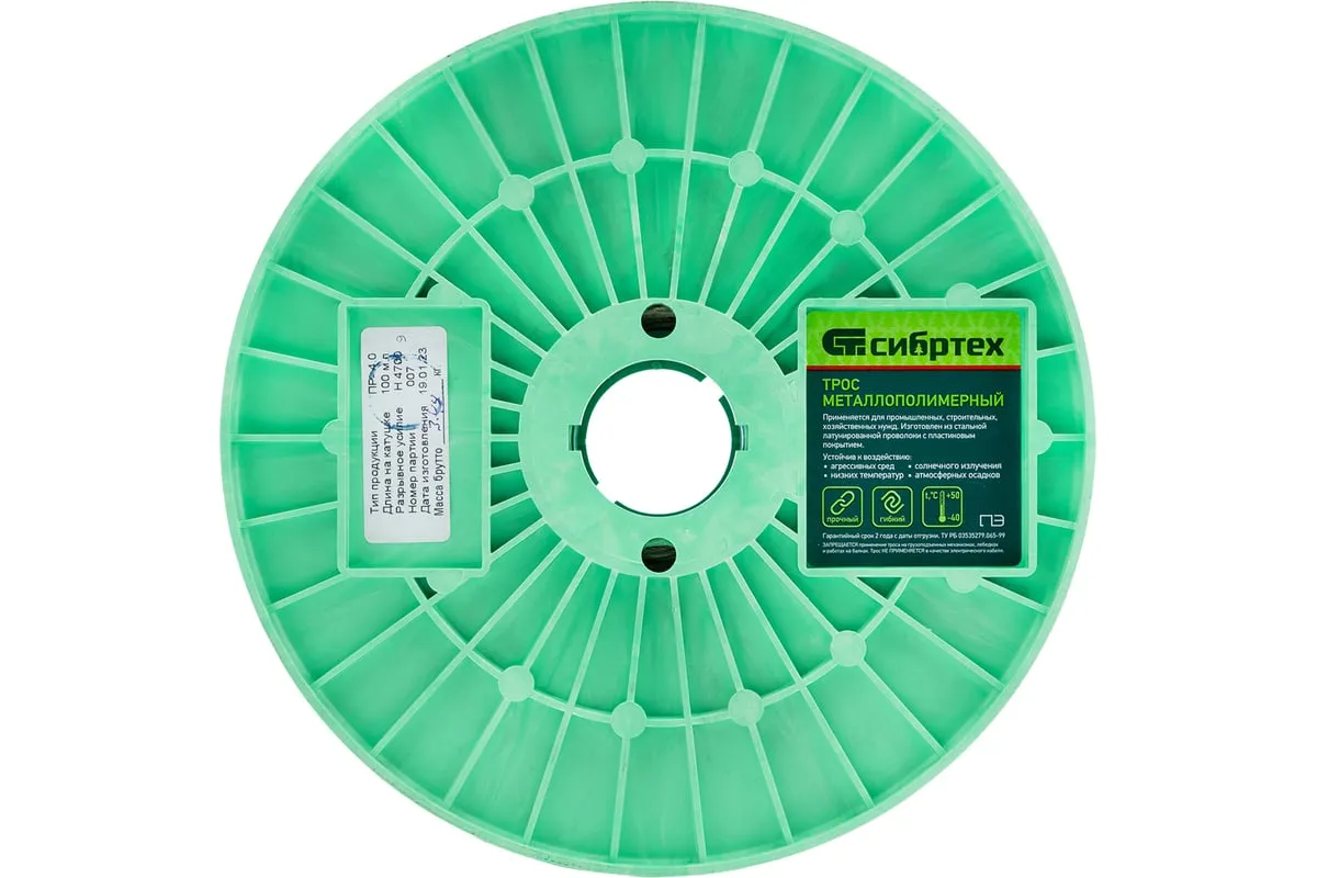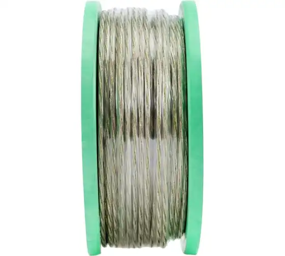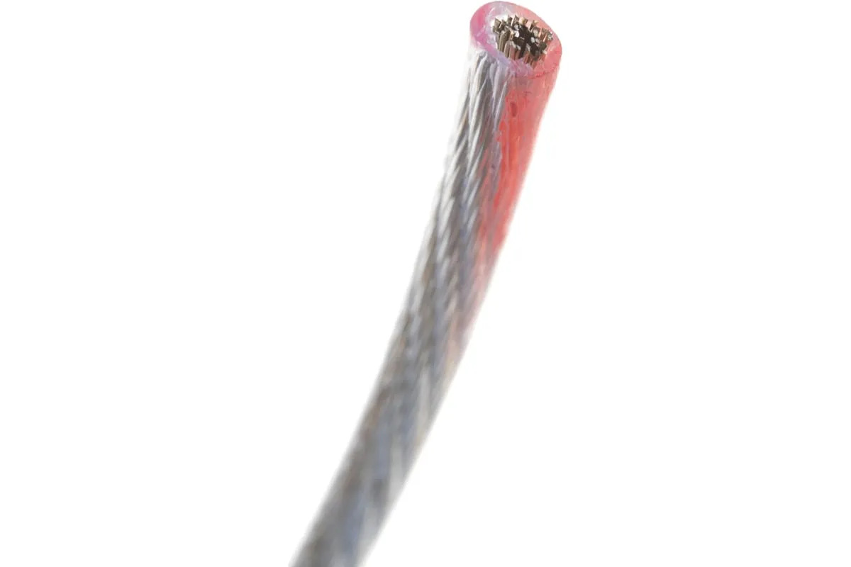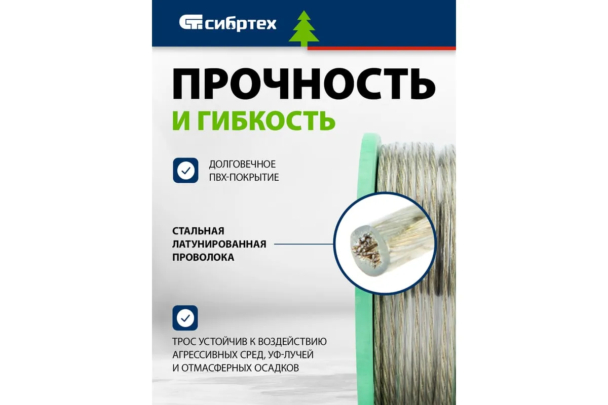 Трос металлополимерный прозрачный ПР-4.0 Сибртех 47630 толщиной 4,0 мм, на катушке 100 м. п., используется для монтажа рекламных баннеров и воздушных кабельных линий, установки ограждений, палаток, теплиц, погружения скважинных насосов и датчиков. Применяется в качестве садового троса-шнура для подвязки растений, а также как трос для белья. Жила шнура состоит из стальной проволоки, поэтому он выдерживает значительные нагрузки.