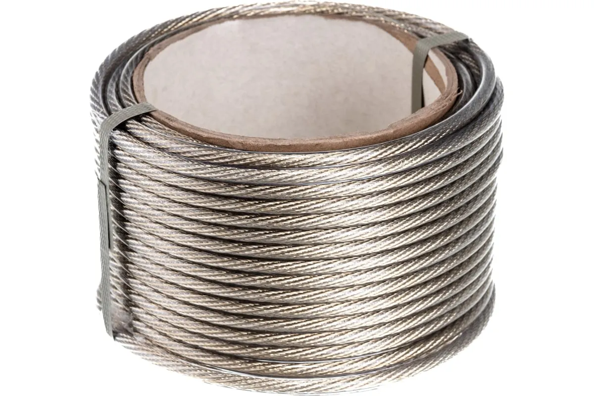 Трос изготовлен из стальной латунированной проволоки и покрыт пластикатом ПВХ методом экструзии, что делает его более устойчивым к окислению.В зависимости от диаметра выдерживает значительные разрывные нагрузки.Применяется при погружении насосов и датчиков в скважины, колодцы, в качестве несущего элемента различных строительных конструкции.Используется при изготовлении рекламных растяжек, для лучшей декоративности предлагается в нескольких цветах.