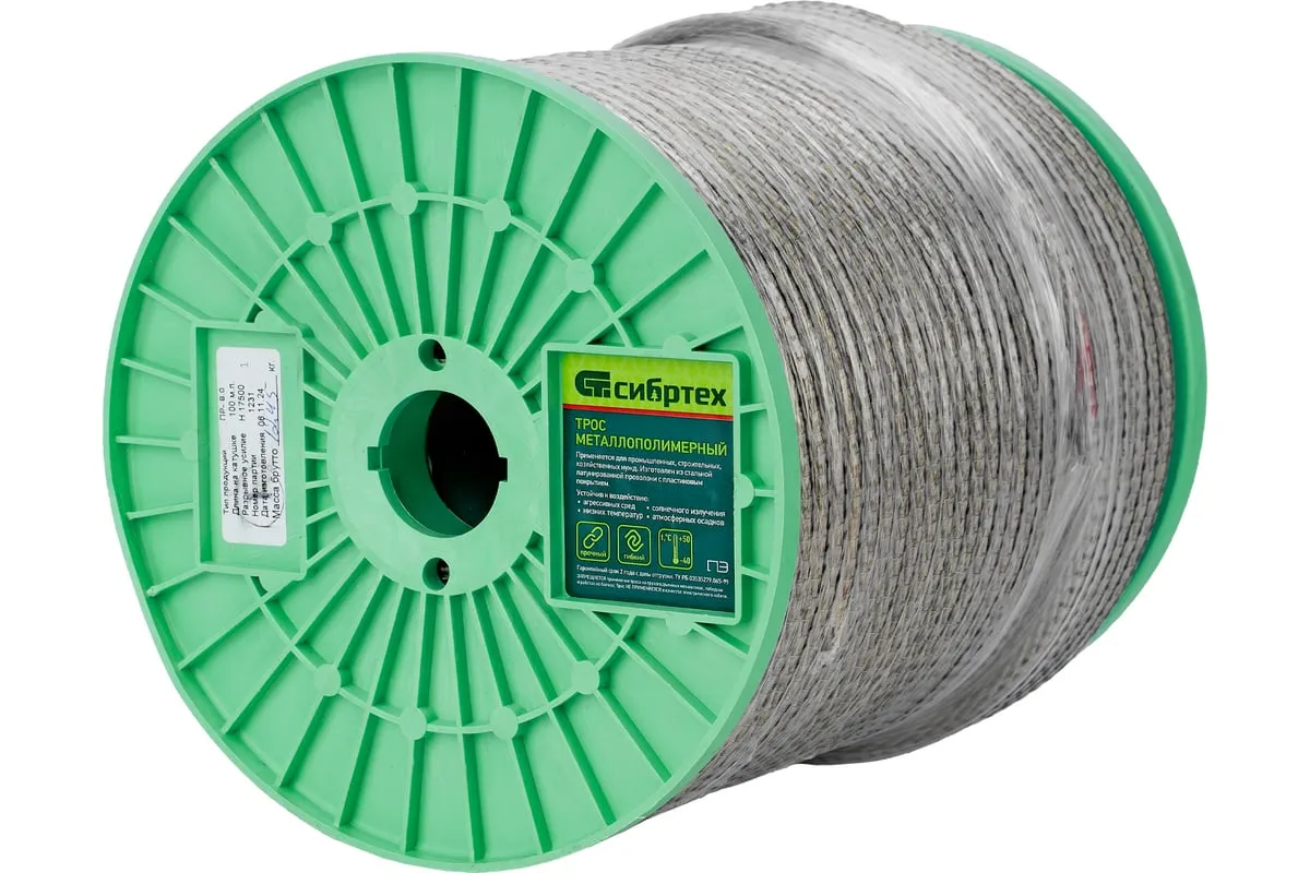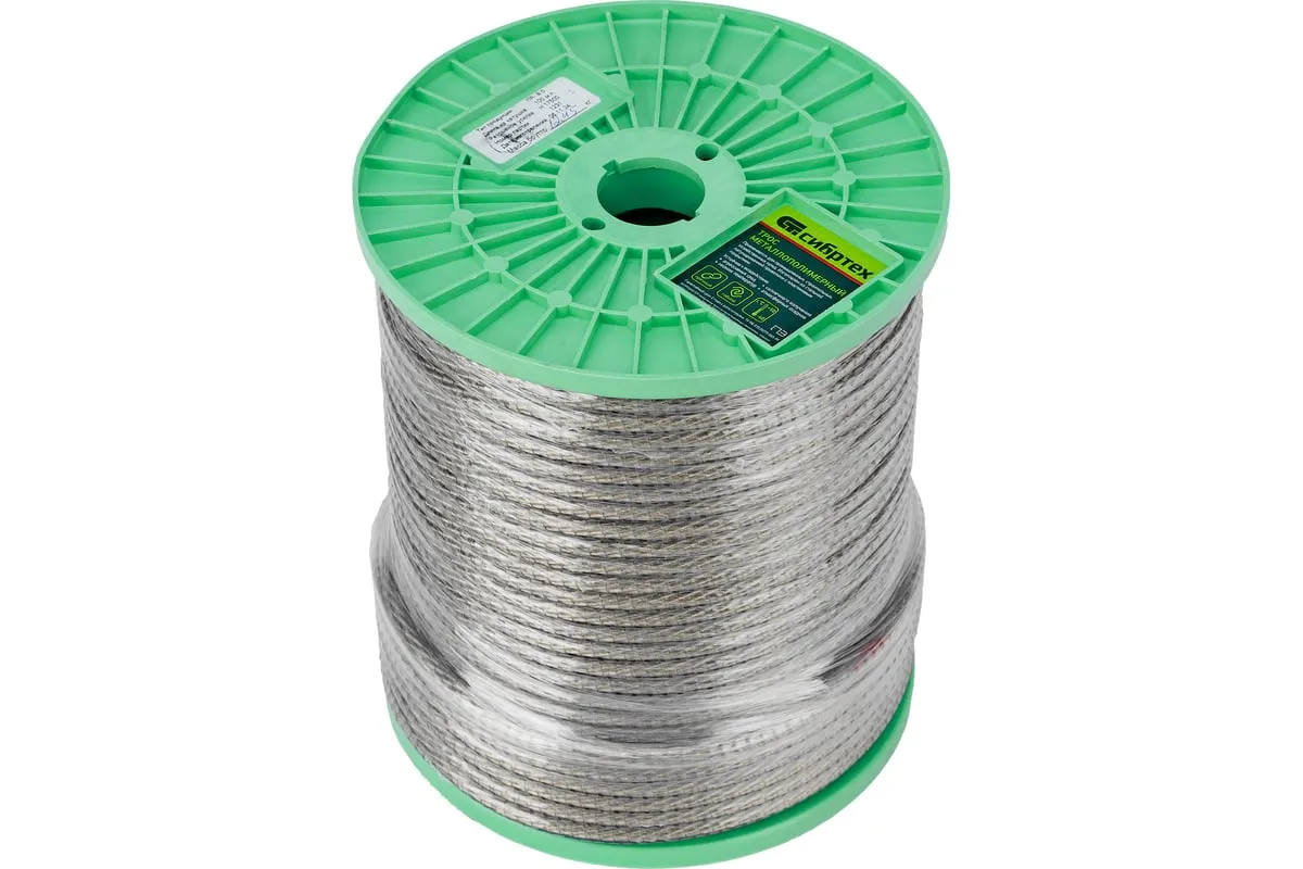 Трос изготовлен из стальной латунированной проволоки и покрыт пластикатом ПВХ методом экструзии, что делает его более устойчивым к окислению.В зависимости от диаметра выдерживает значительные разрывные нагрузки.Применяется при погружении насосов и датчиков в скважины, колодцы, в качестве несущего элемента различных строительных конструкции.Используется при изготовлении рекламных растяжек, для лучшей декоративности предлагается в нескольких цветах.