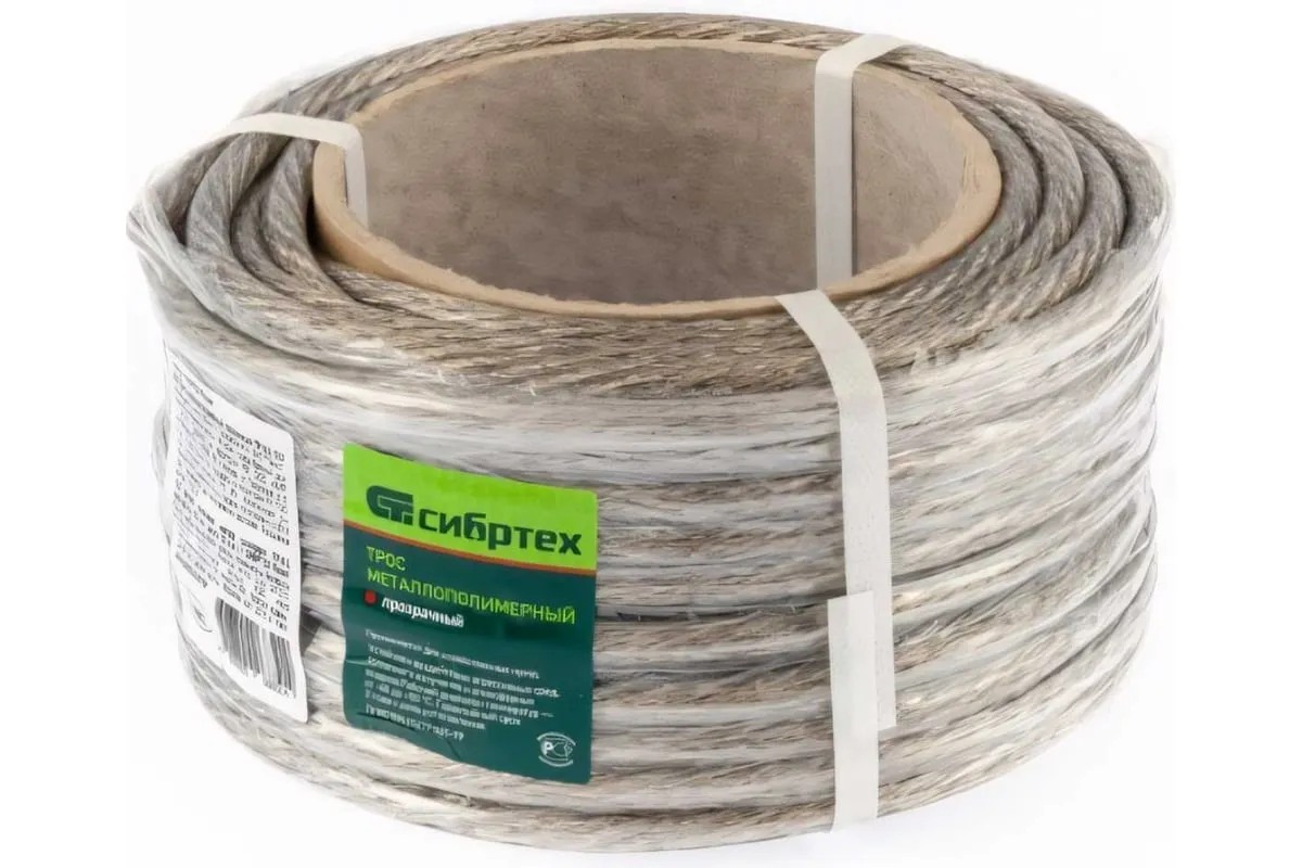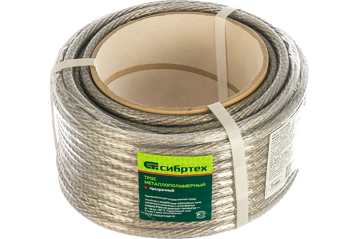 Трос изготовлен из стальной латунированной проволоки и покрыт пластикатом ПВХ методом экструзии, что делает его более устойчивым к окислению. В зависимости от диаметра выдерживает значительные разрывные нагрузки. Применяется при погружении насосов и датчиков в скважины, колодцы, в качестве несущего элемента различных строительных конструкции. Используется при изготовлении рекламных растяжек, для лучшей декоративности предлагается в нескольких цветах. 2 мм диаметра троса приходится на оплетку.