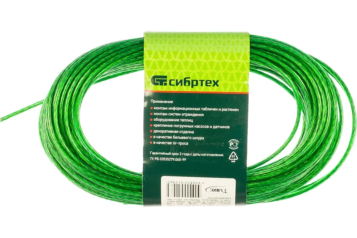 Трос изготовлен из стальной латунированной проволоки и покрыт пластикатом ПВХ методом экструзии, что делает его более устойчивым к окислению.В зависимости от диаметра выдерживает значительные разрывные нагрузки.Применяется при погружении насосов и датчиков в скважины, колодцы, в качестве несущего элемента различных строительных конструкции.Используется при изготовлении рекламных растяжек, для лучшей декоративности предлагается в нескольких цветах.