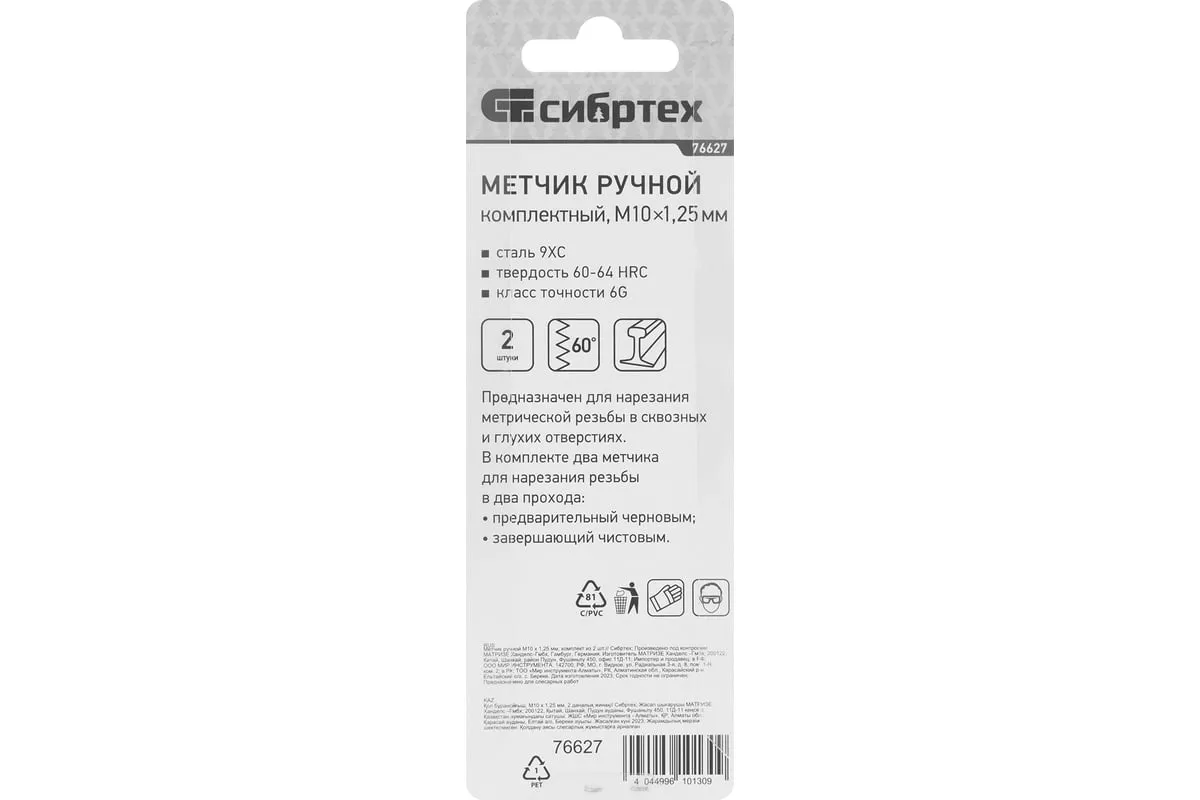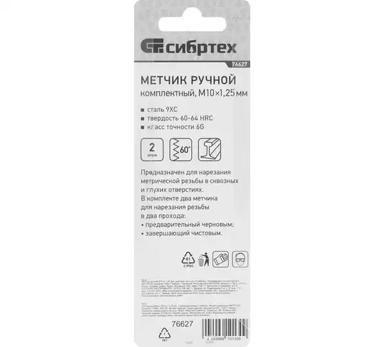 Ручной метчик Сибртех 76627 предназначен для нарезания внутренней резьбы диаметром М10 и шагом 1,25 мм. Используется для работы со сквозными и глухими отверстиями. Устанавливается на метчикодержатель под посадочный квадрат 5 мм. Метчик пригодится для проведения слесарных работ на строительной площадке и в быту.