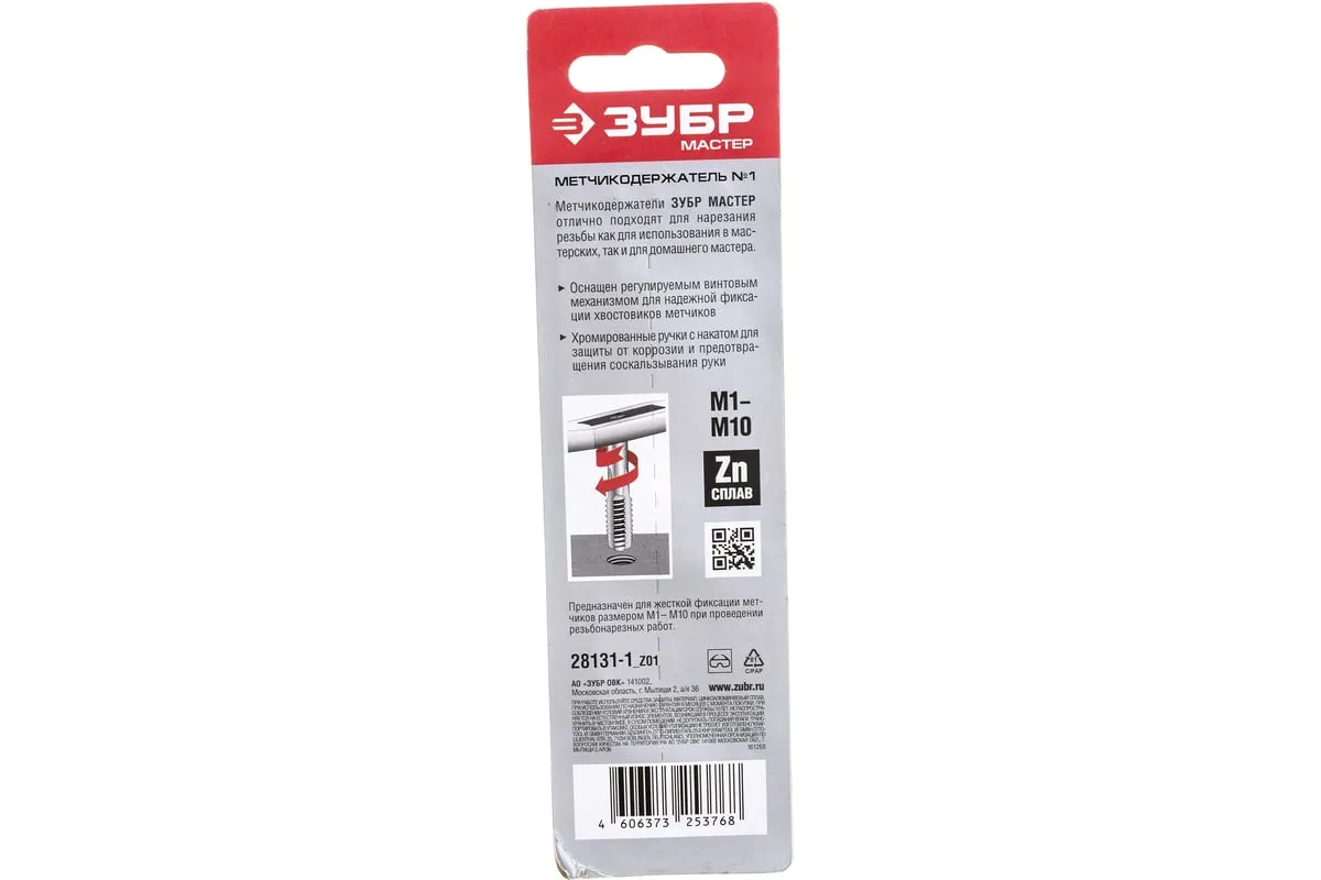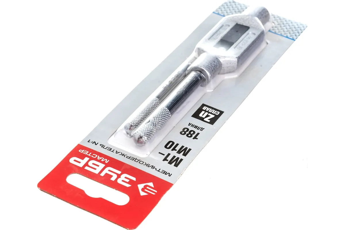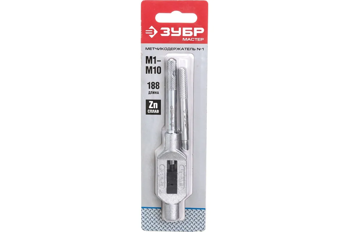 Метчикодержатель ЗУБР №1 28131-1 используется для работы с метчиками M1-M10. Вкладыши инструмента позволяют неподвижно зафиксировать метчик и произвести качественную нарезку резьбы. Для удобства работы этот инструмент оснащен стальными рукоятками.