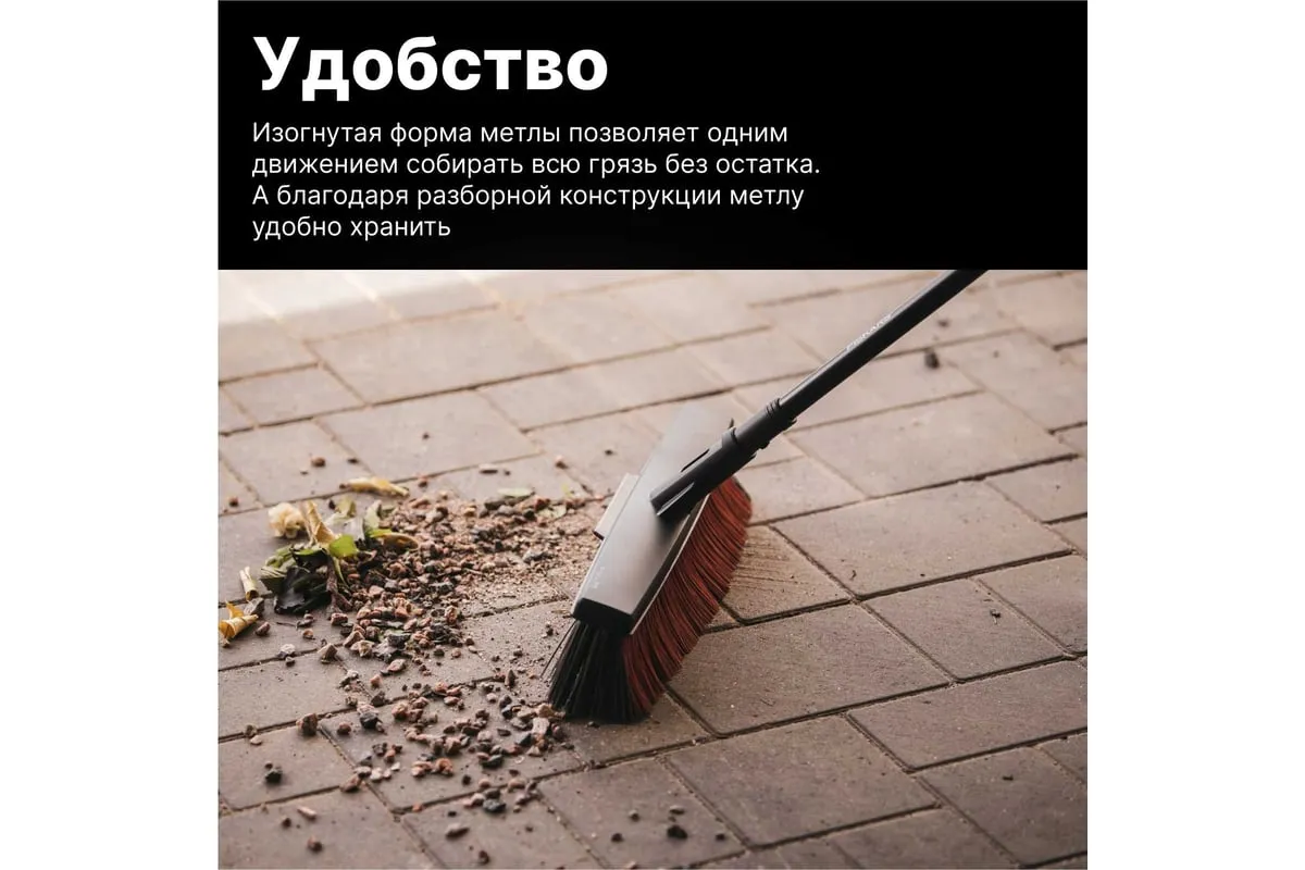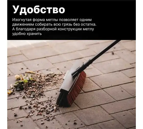Метла имеет царапающий край, благодаря чему легко удаляет стойкие загрязнения.