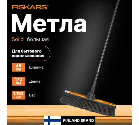 Метла Fiskars SolidTM большая 1025926 предназначена для уборки территории, террасы, гаража и коридора.