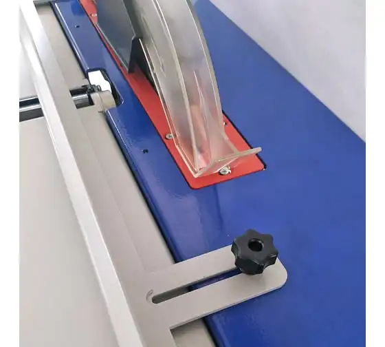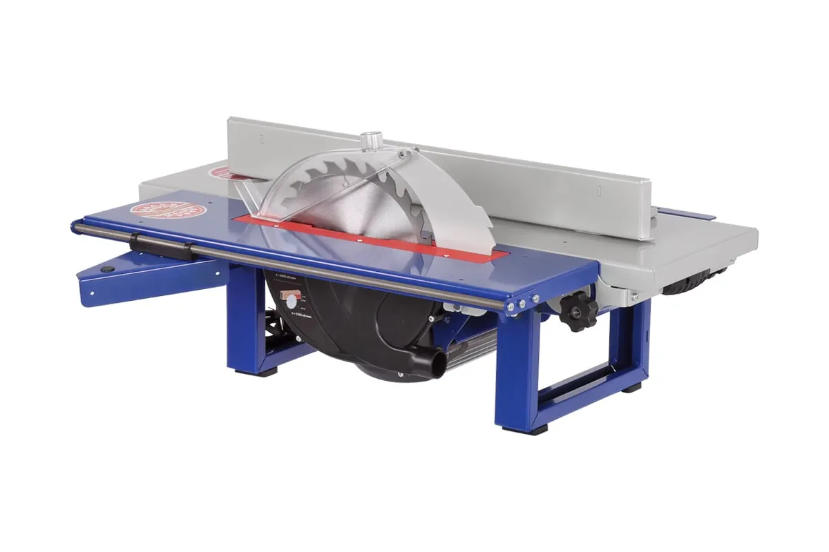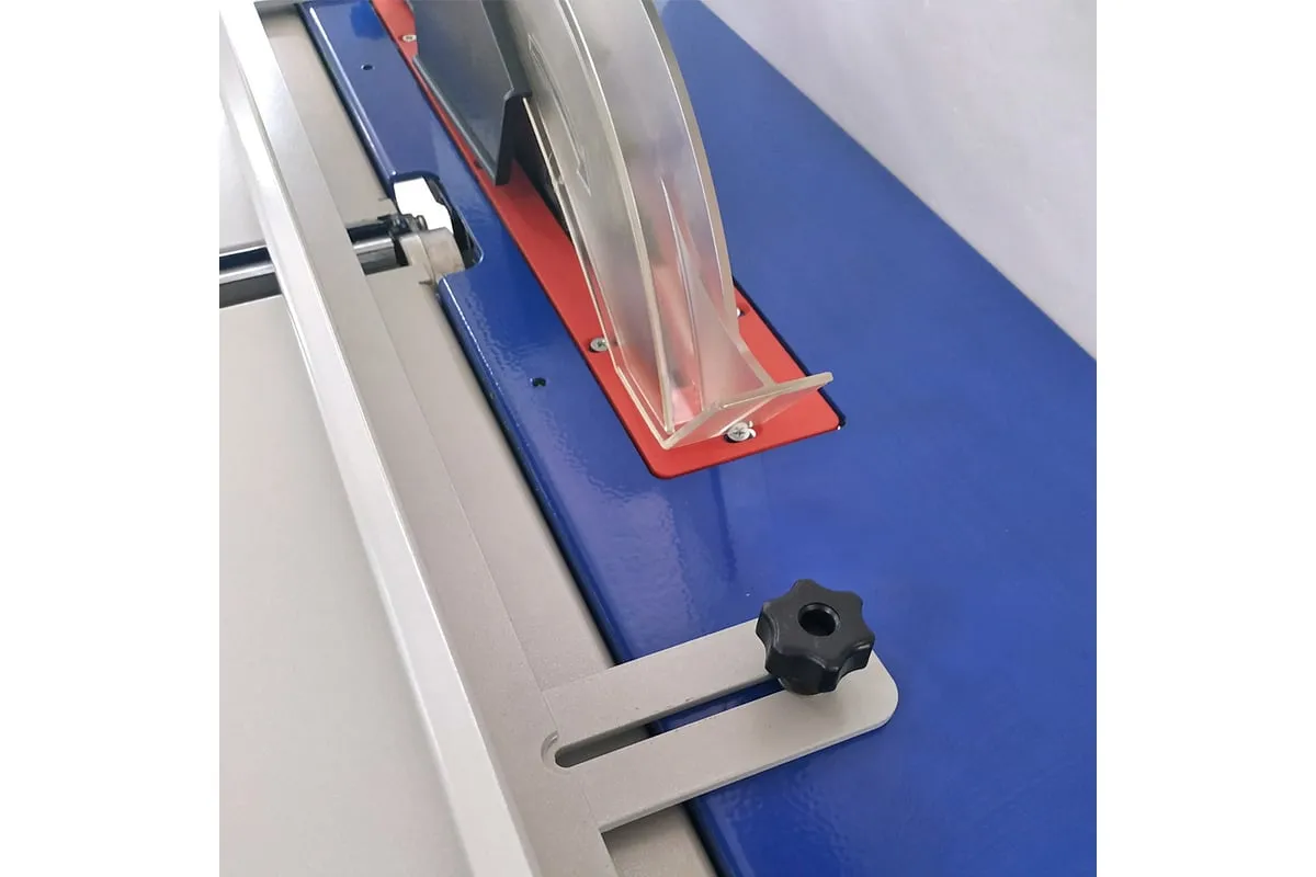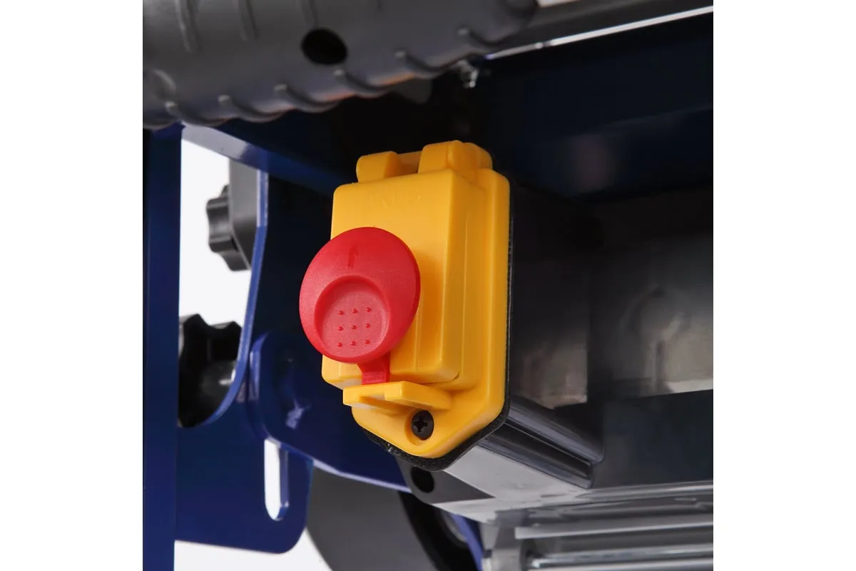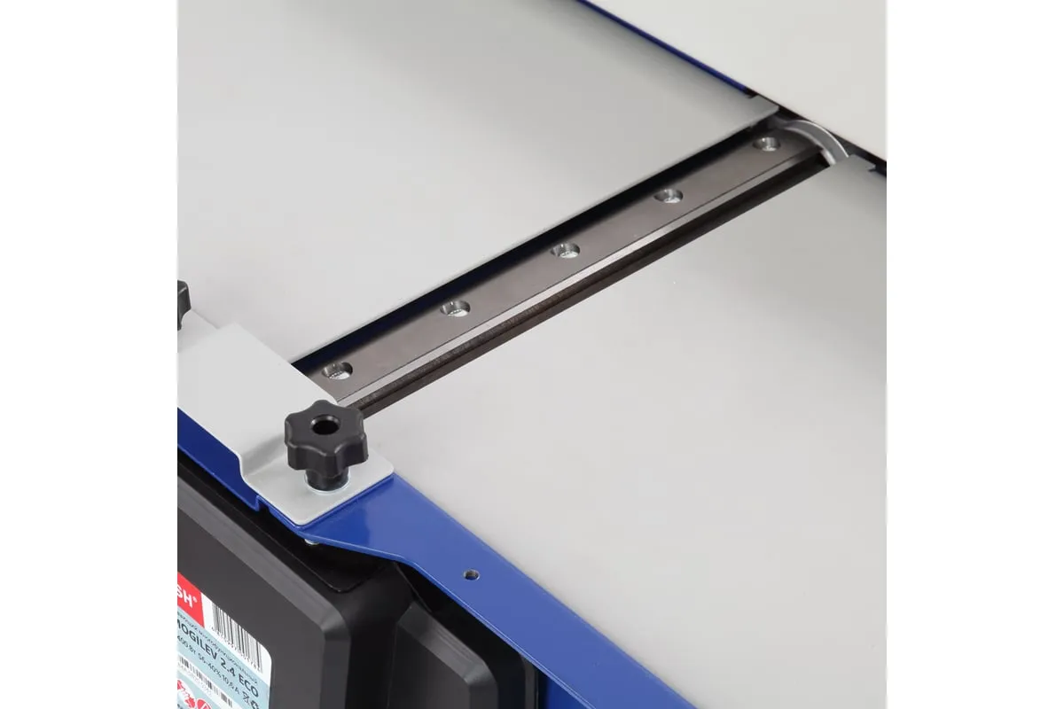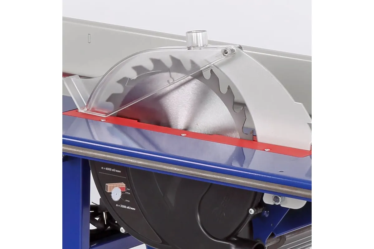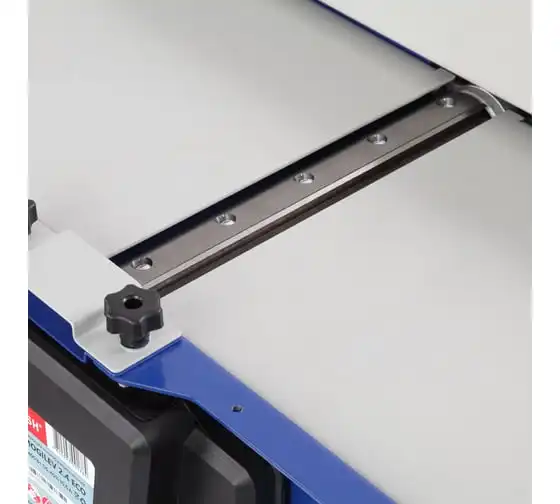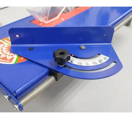 Данная модель оснащена специальной линейкой, что позволяет отслеживать положение заготовки относительно режущего инструмента. Кроме этого станок оборудован приспособлением для распиловки под углом. Все это обеспечивает пользователю удобство и контроль рабочего процесса.
