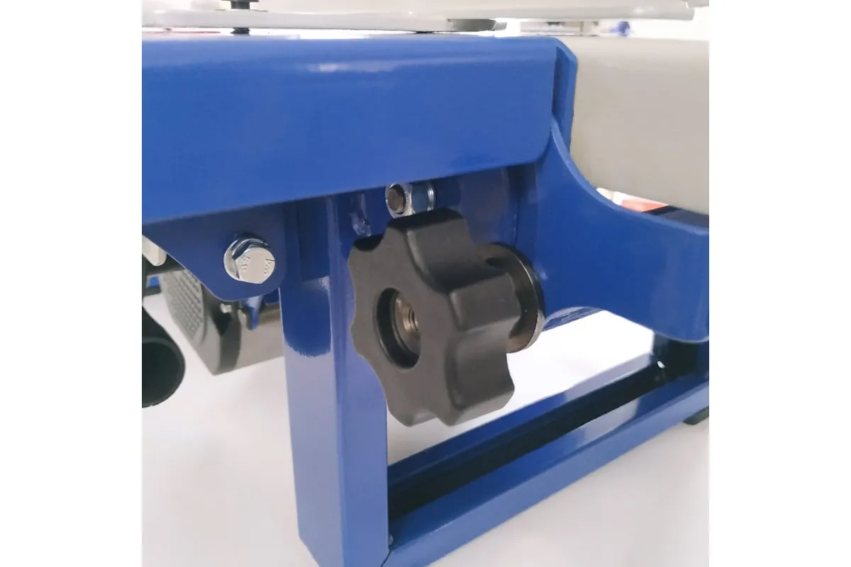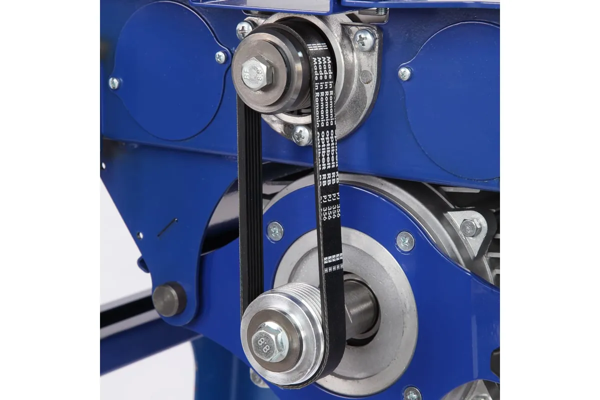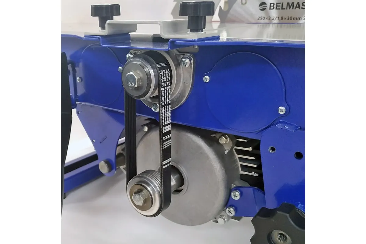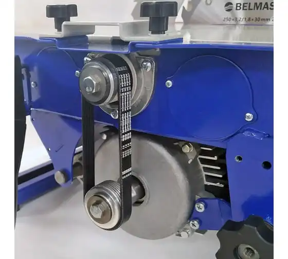 Вручную можно отрегулировать натяжение ремня. С помощью сменного шкива предусмотрено изменение скорости вращения режущего инструмента.