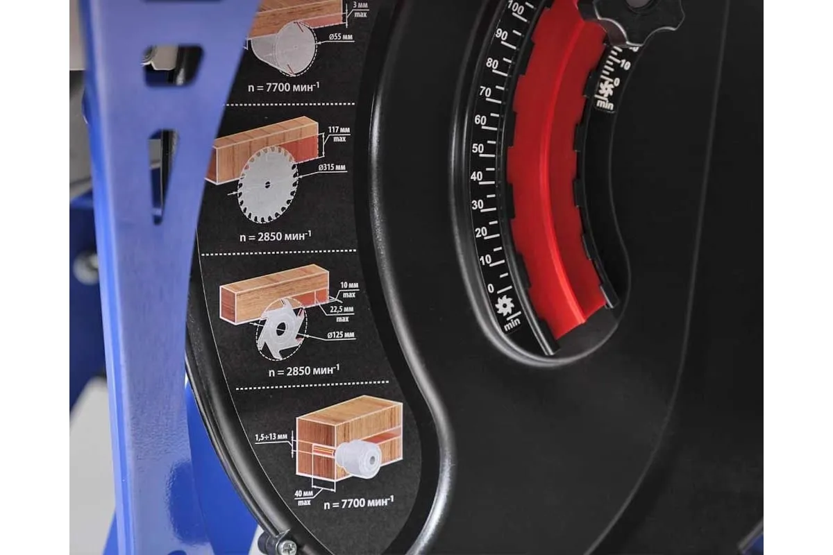 Распил осуществляется как вдоль, так и поперек. Допускается резание деталей по ребру под заданным углом. Высокая скорость вращения диска гарантирует быстрый рез и чистую линию распила. Максимально допустимая толщина заготовки составляет 117 мм, ширина - 280 мм (при использовании комбинированной линейки). Размер рабочей поверхности станка - 872х532 мм.