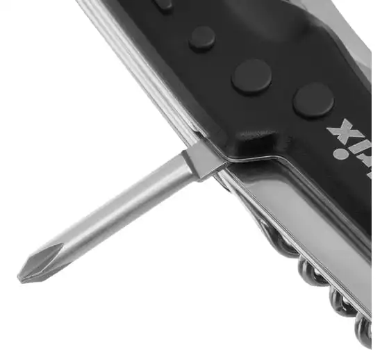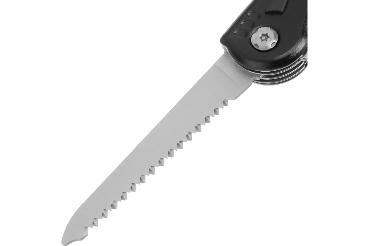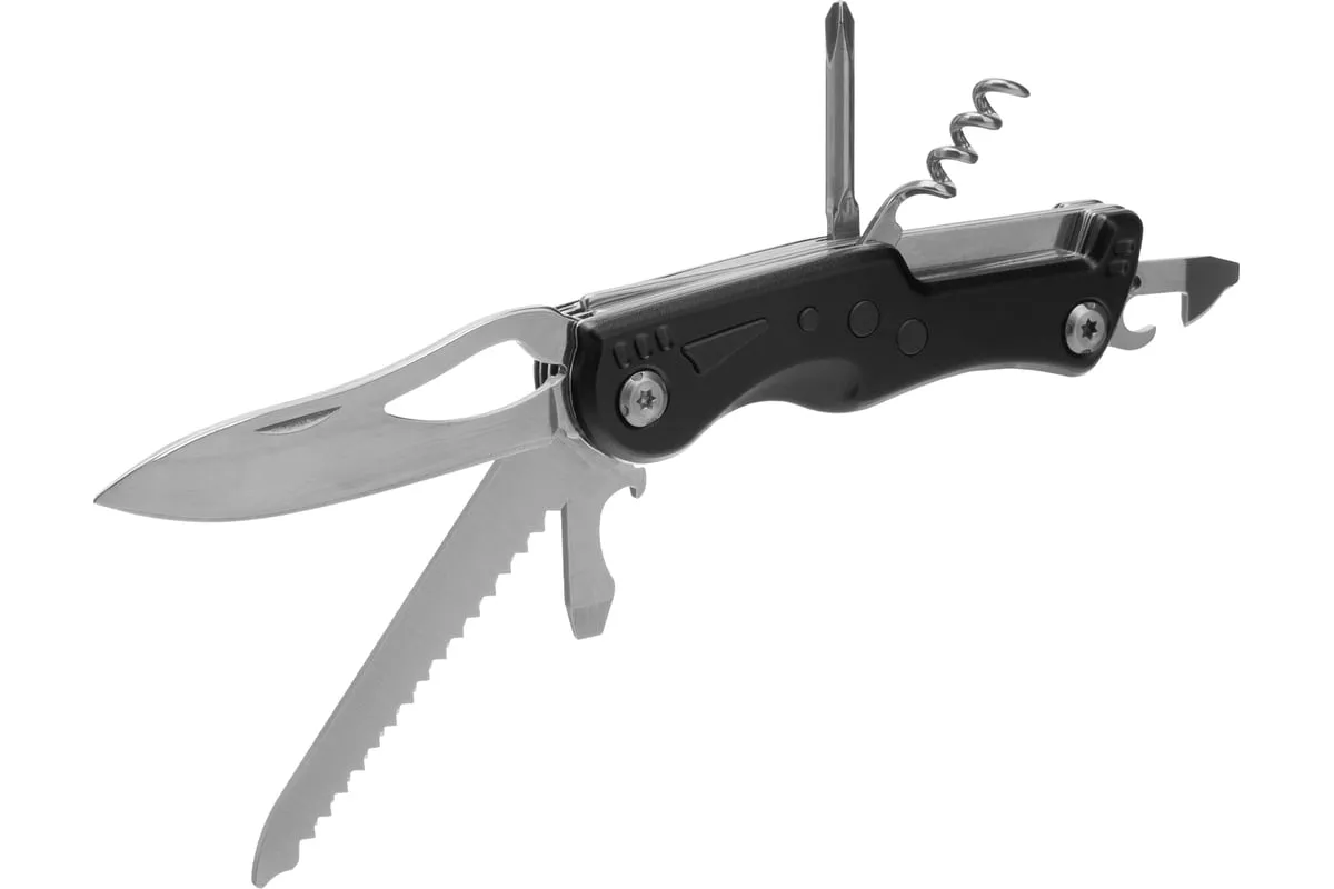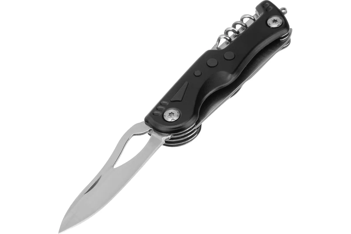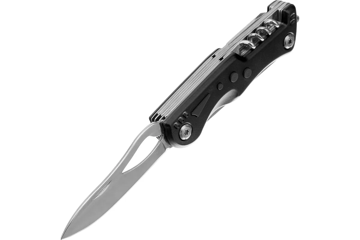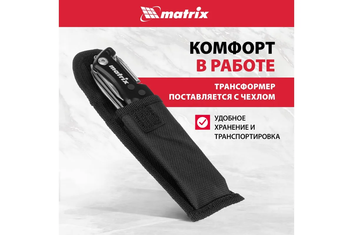 Многофункциональный нож Matrix 17624 длиной 107 мм имеет 7 функций и поставляется с чехлом. Способен резать картон и другие материалы, откручивать и закручивать резьбовой крепеж, открывать бутылки и консервные банки. Складной нож будет полезен дома, на даче, на пикнике, охоте или рыбалке, также пригодится в гараже.