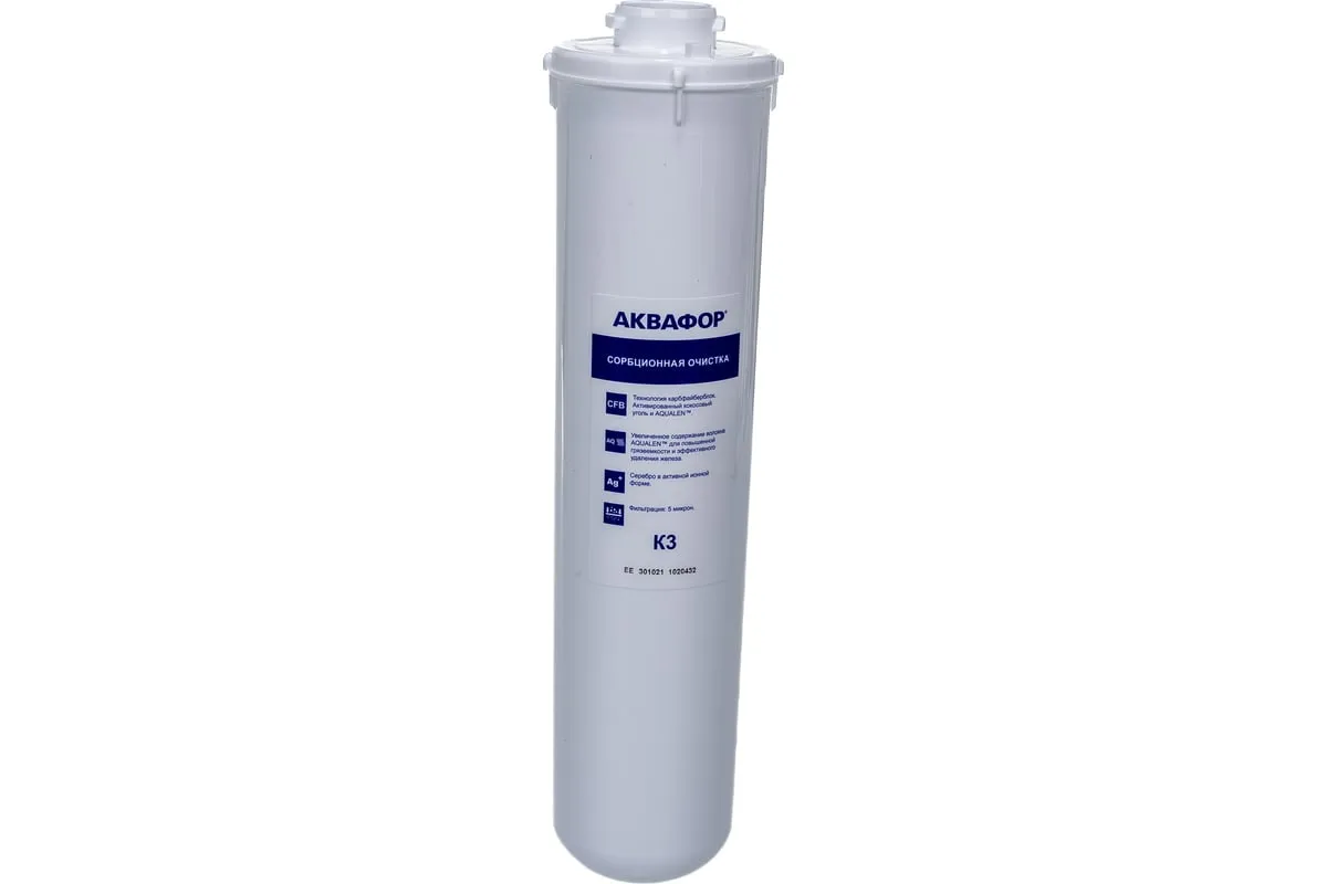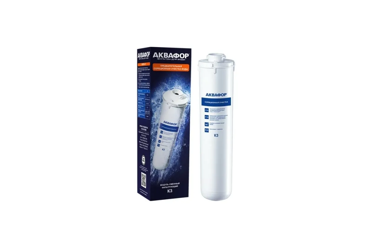 Модуль сменный фильтрующий Аквафор К3 подходит для фильтрующих систем Аквафор Кристалл с отдельным краном. Тщательно устраняет все вредные примеси, особенно хлор, тяжелые металлы, органические вещества. Используется для предварительной очистки воды. Замена модуля происходит вместе с корпусом.