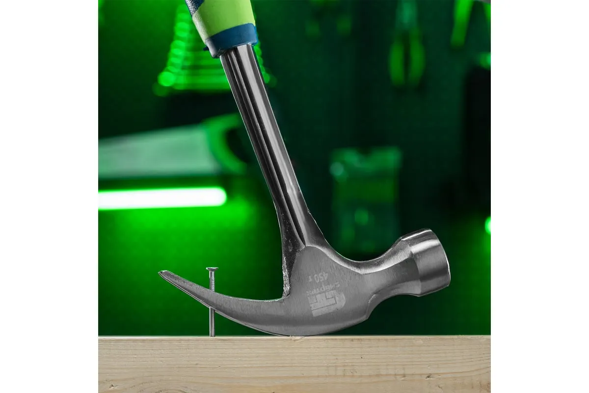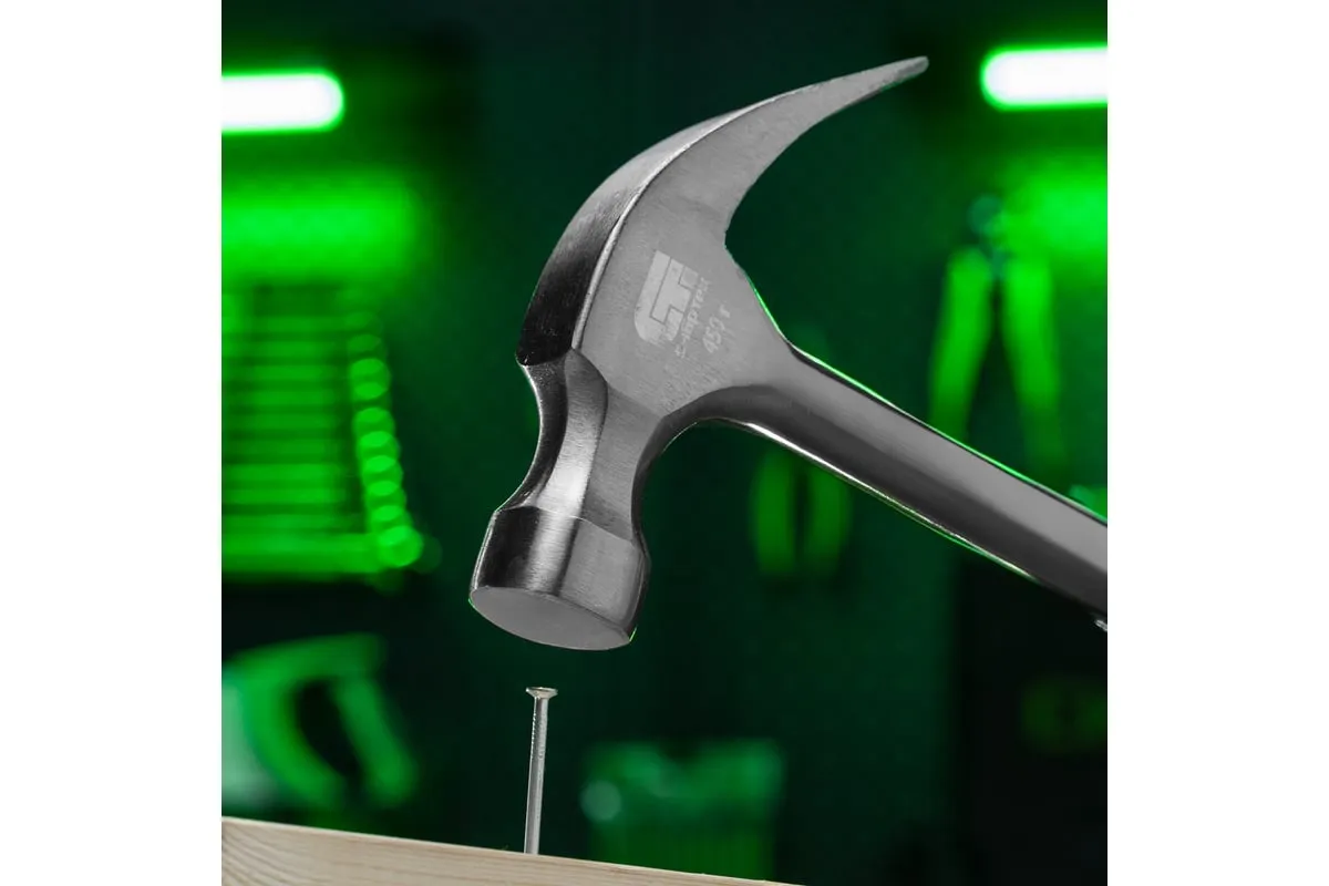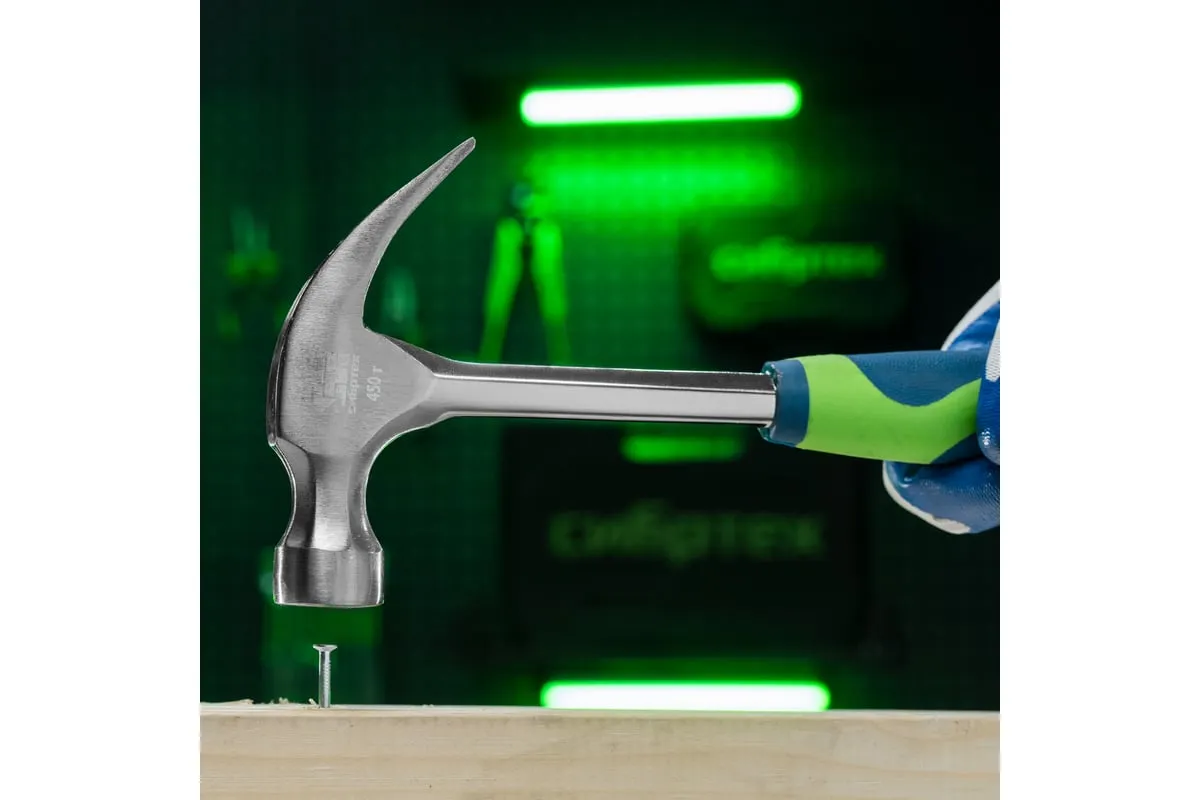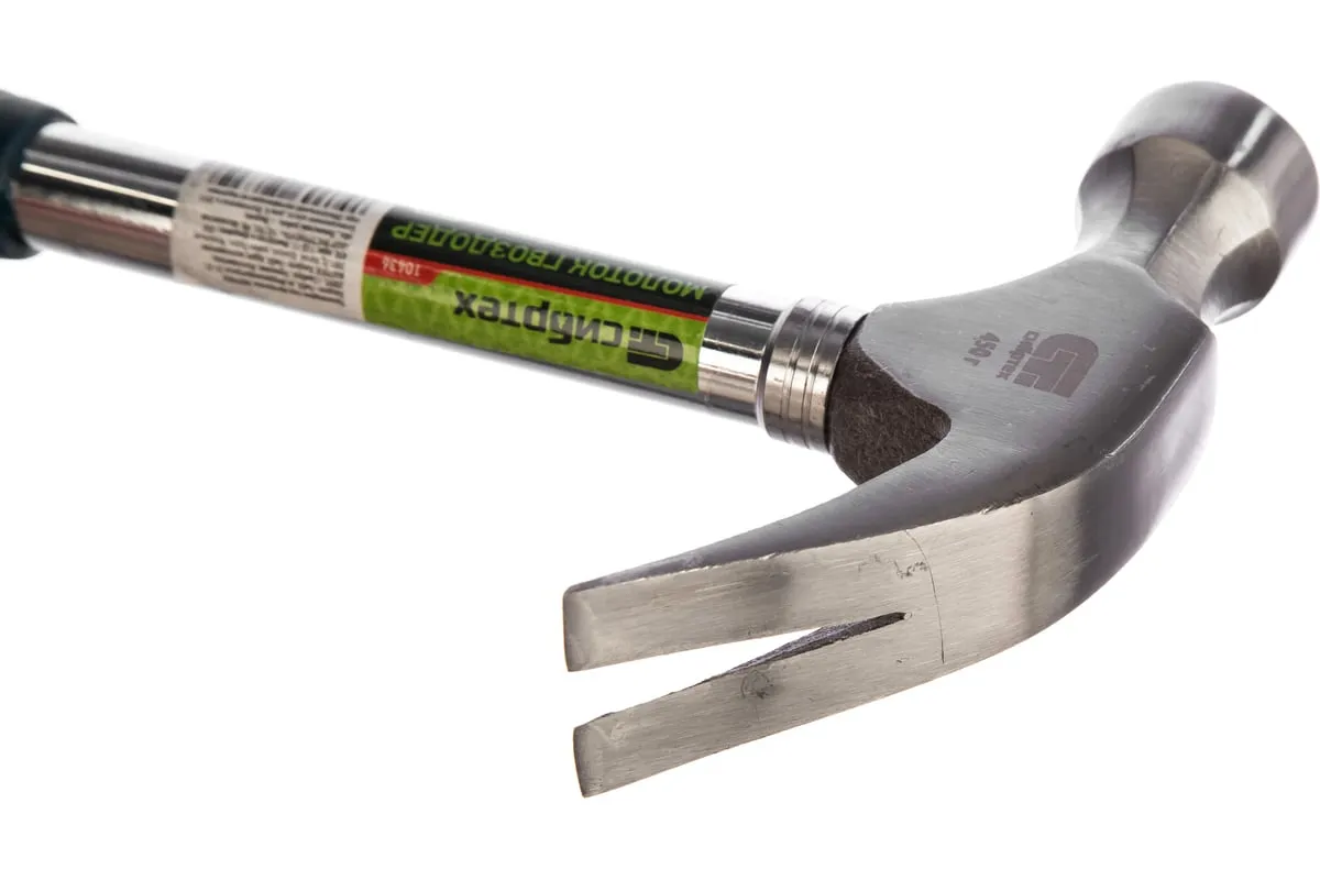 Молоток-гвоздодер Сибртех 10436 длиной 315 мм, с головкой весом 450 г и размером бойка 27 мм, с металлической трубчатой обрезиненной рукояткой, предназначен для проведения монтажных и демонтажных работ. Им удобно забивать крепежные элементы, кроме того, инструмент позволяет выпрямить загнувшийся гвоздь. Молоток полезен на стройплощадке, при сборке мебели, во время отделочных работ, пригодится также для использования в домашних условиях.