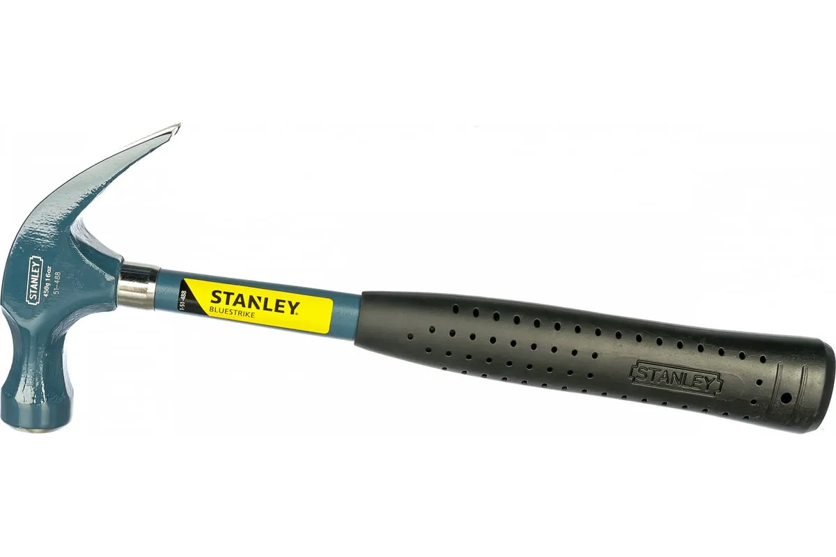 Молоток с гвоздодером 450 гр Stanley BLUE STRIKE 1-51-488 - это столярный ударный инструмент, который сочетает в себе плоскую рабочую часть с одной стороны, а с другой - загнутый гвоздодер. Молоток обладает высоким запасом прочности, его голова изготовлена из прочной стали методом ковки и дополнительно термообработана. Трубчатая стальная ручка облегчает конструкцию молотка. Специальная эргономичная накладка из флокированного винила не подвержена вредному воздействию масел и растворителей, что продлевает срок службы изделия.