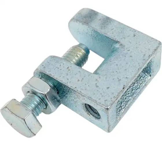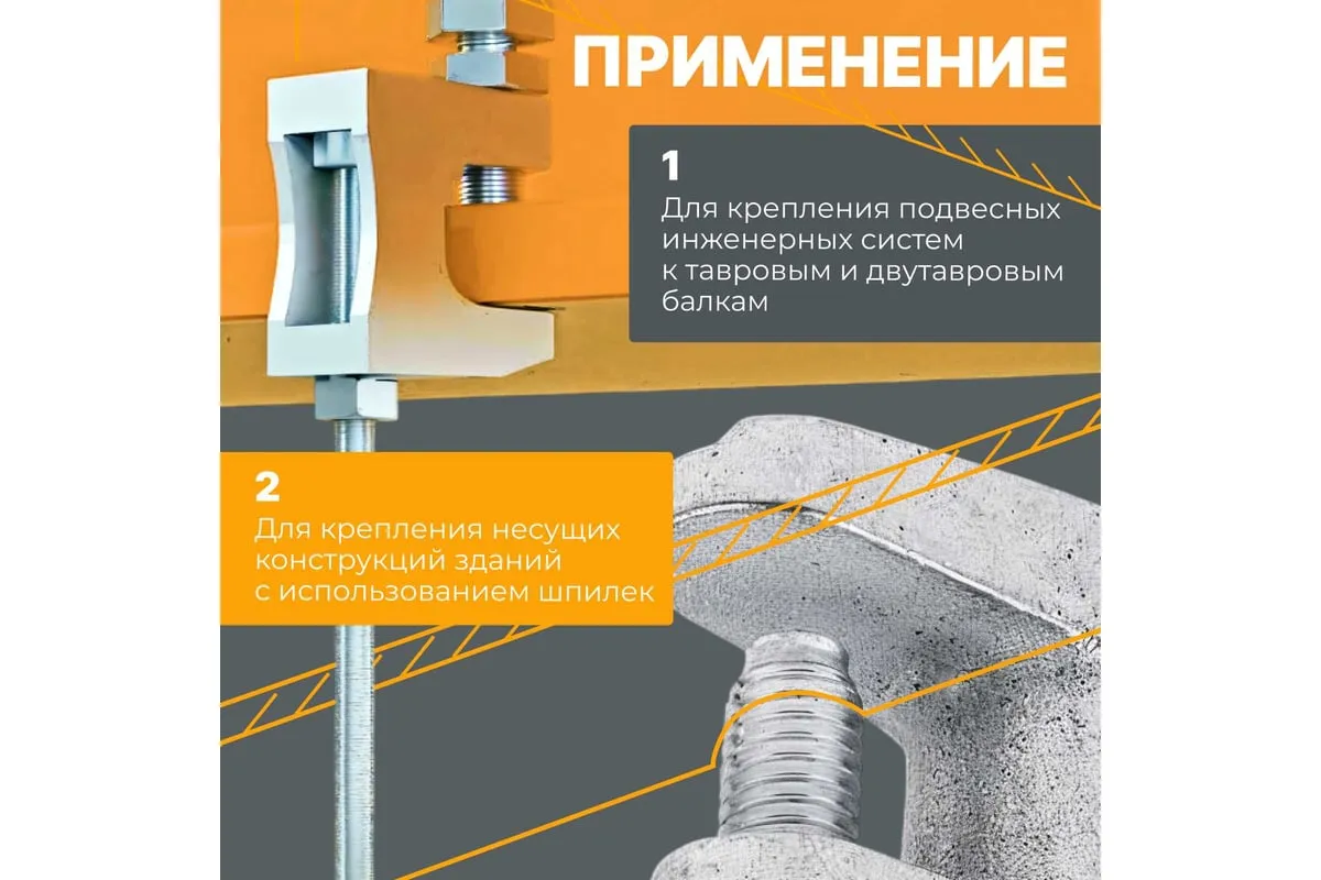 Монтажная струбцина применяется для крепления подвесных инженерных систем к тавровым и двутавровым балкам, несущих конструкций зданий, с использованием шпилек. Изготавливается из металла, методом литья, с последующим нанесением антикоррозийного покрытия. Элементы дают возможность надежного крепления без применения сварки или сверления. Также дополнительным преимуществом применения струбцин, будет возможность легко регулировать высоту подвески. Параметры захвата: 4.50смх5.50смх2.00см.