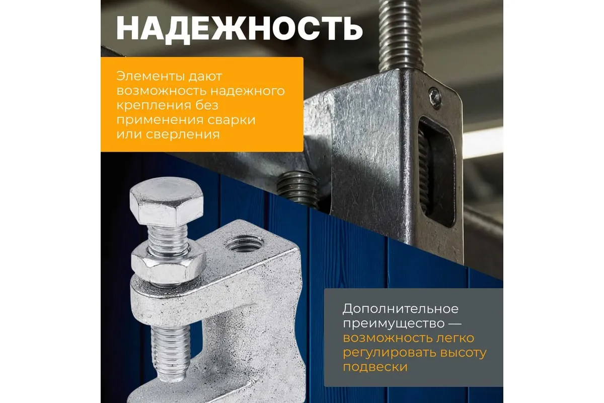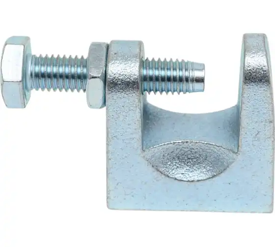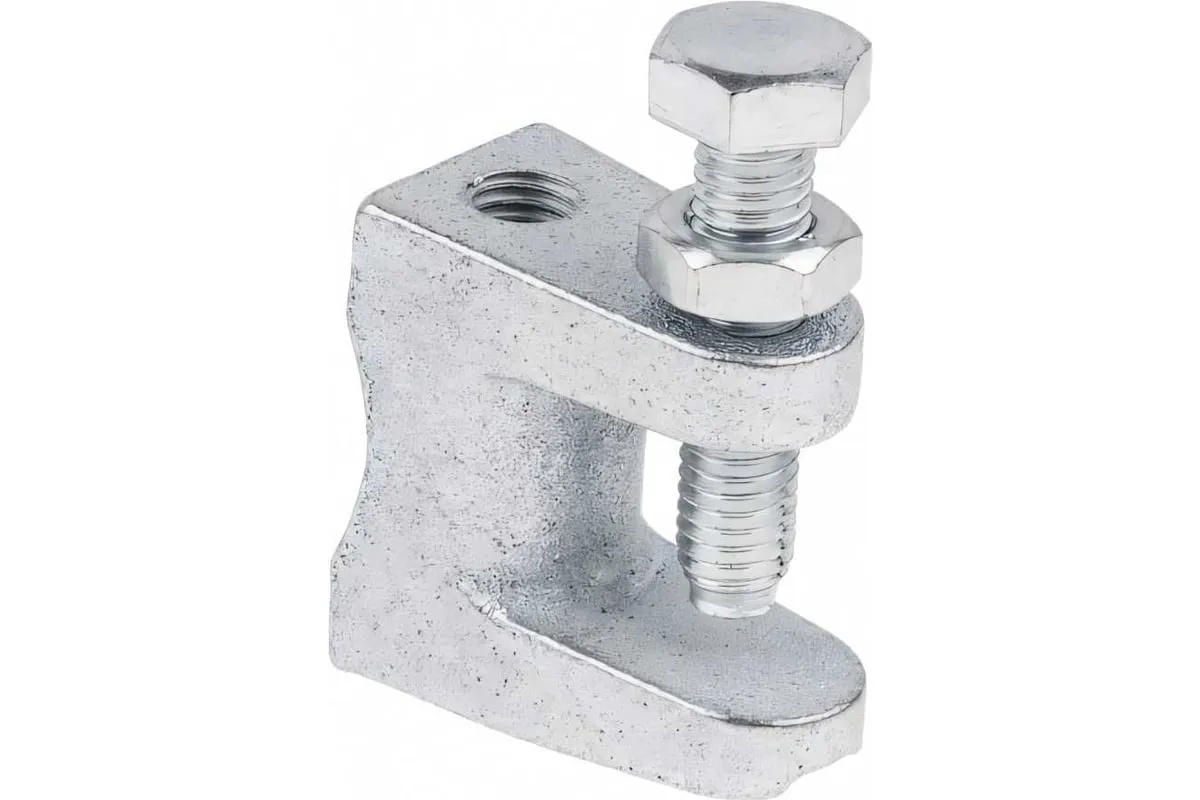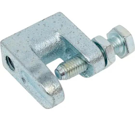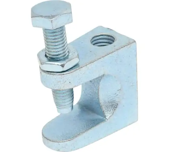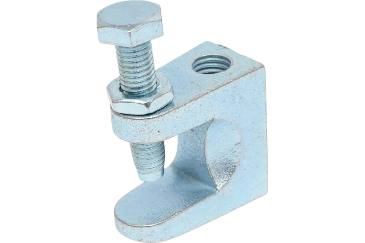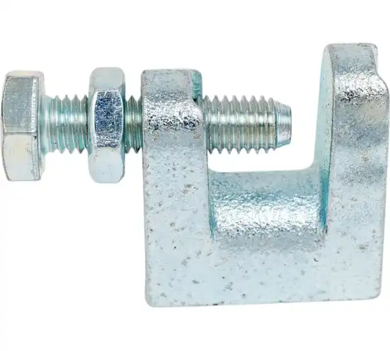Монтажная струбцина применяется для крепления подвесных инженерных систем к тавровым и двутавровым балкам, несущих конструкций зданий, с использованием шпилек. Изготавливается из металла, методом литья, с последующим нанесением антикоррозийного покрытия. Элементы дают возможность надежного крепления без применения сварки или сверления. Также дополнительным преимуществом применения струбцин, будет возможность легко регулировать высоту подвески.