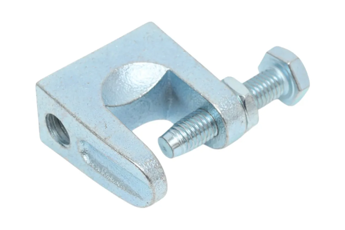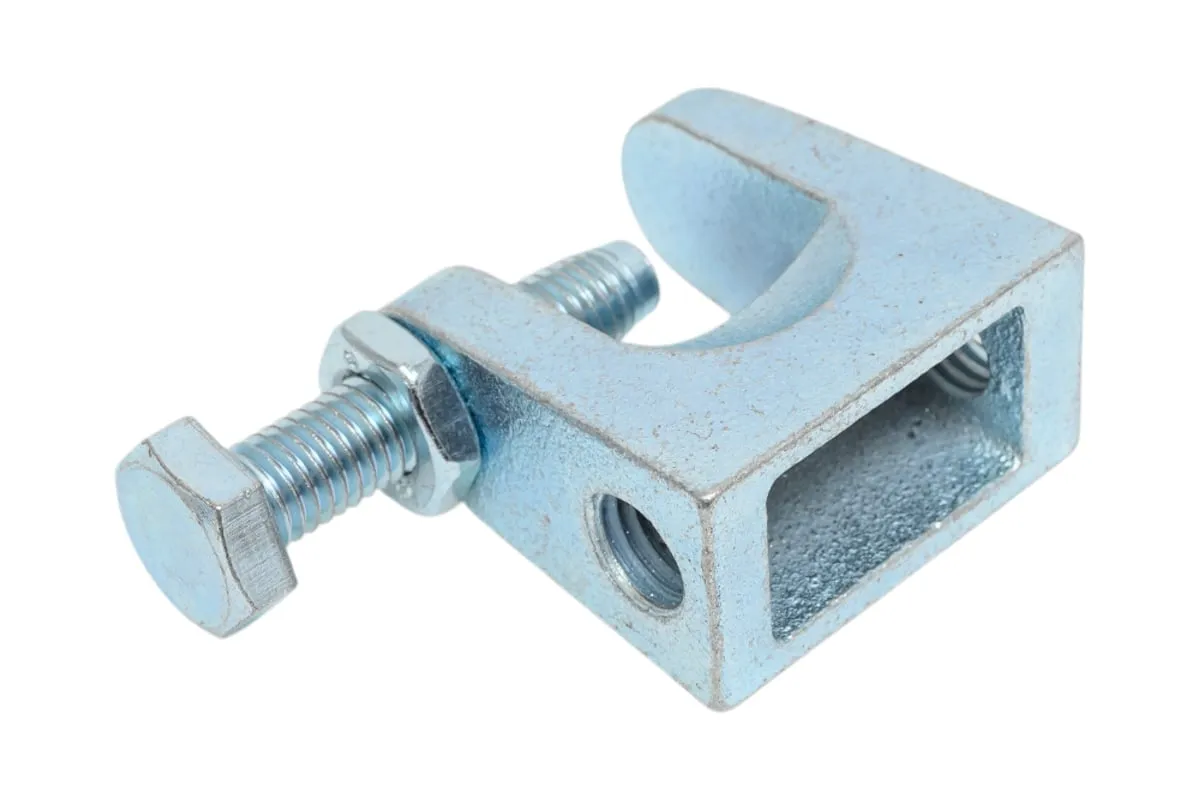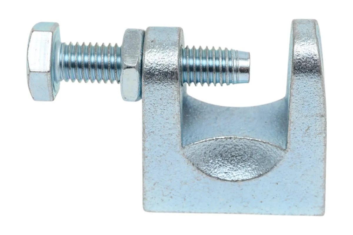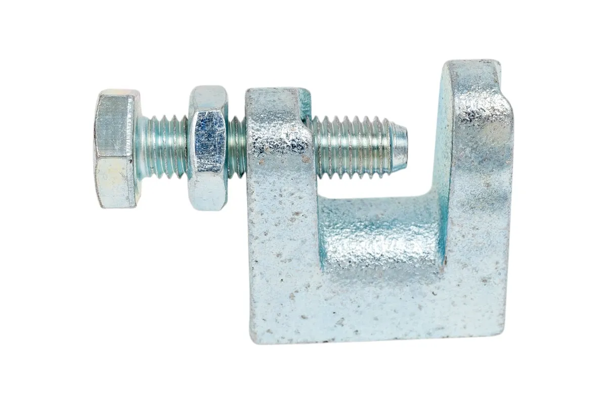 Монтажная струбцина применяется для крепления подвесных инженерных систем к тавровым и двутавровым балкам, несущих конструкций зданий, с использованием шпилек. Изготавливается из металла, методом литья, с последующим нанесением антикоррозийного покрытия. Элементы дают возможность надежного крепления без применения сварки или сверления. Также дополнительным преимуществом применения струбцин, будет возможность легко регулировать высоту подвески.