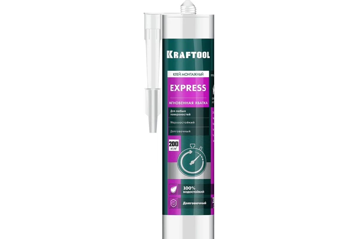 Монтажный клей, экспресс хватка, 310 мл KRAFTOOL 41347 применяется при выполнении строительных и ремонтных работ. Средство создает эластичный шов высокой прочности. Состав обладает отличной скоростью схватывания и подходит для мест, где требуется осуществить быстрое склеивание. Продукт имеет хорошую адгезию к большинству строительных материалов.