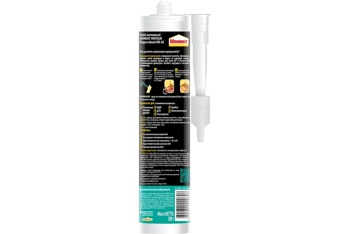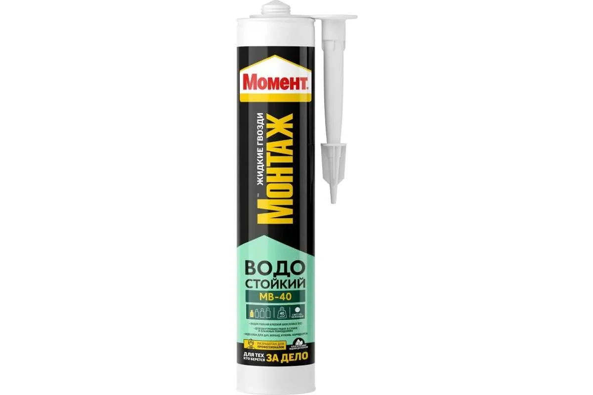 Монтажный клей Момент МОНТАЖ Водостойкий МВ40, 300 г Б0022974 - монтажный клей для внутренних работ как в сухих, так и во влажных помещениях.