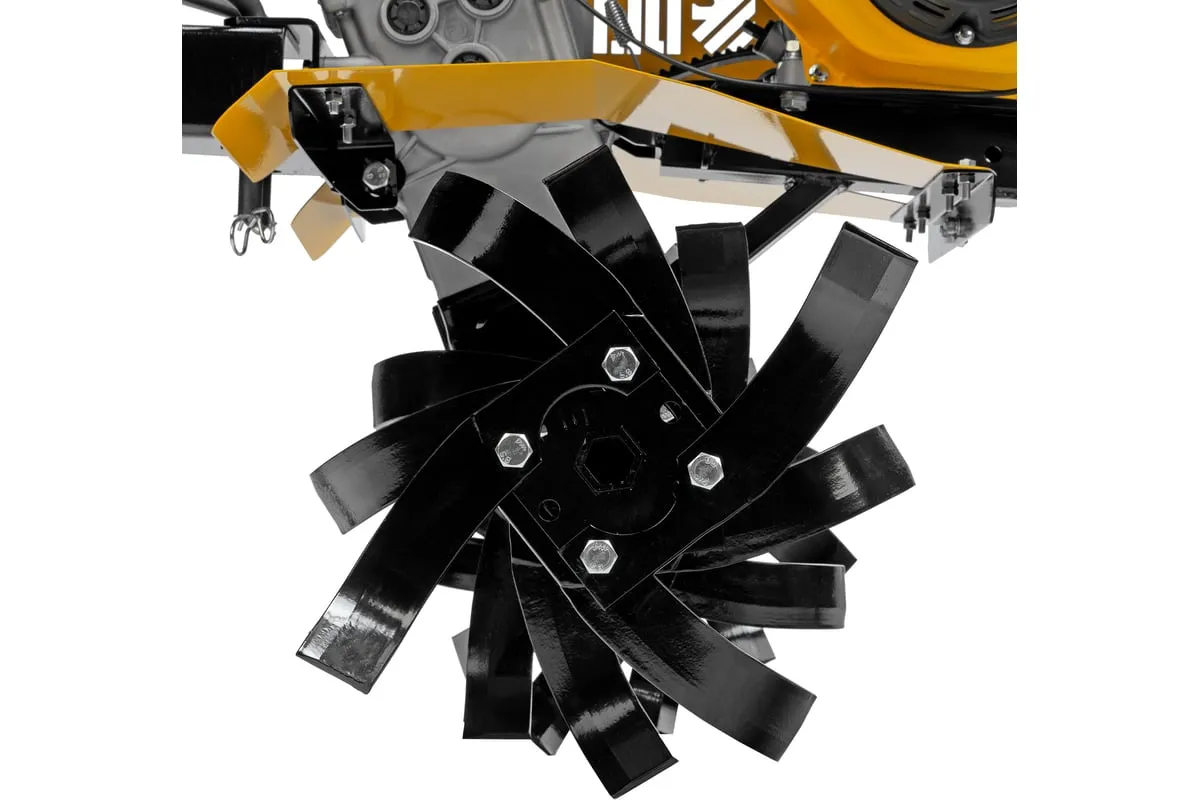 Высокая прочность. Шесть рядов фрез из закаленной стали не деформируются при высоких нагрузках, подходят для обработки любого грунта и не требуют повторной заточки.
