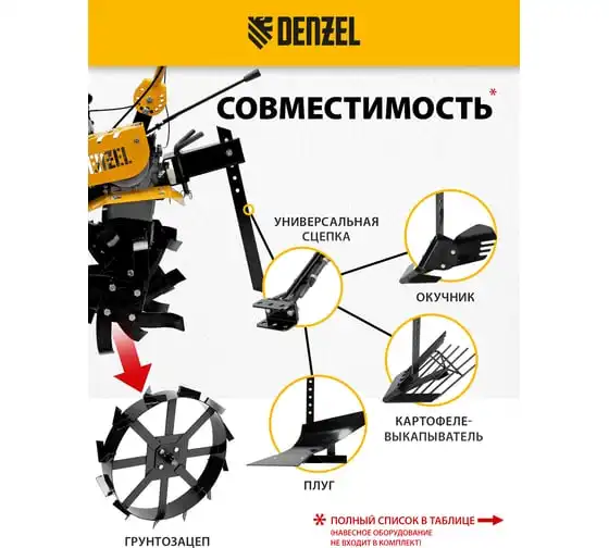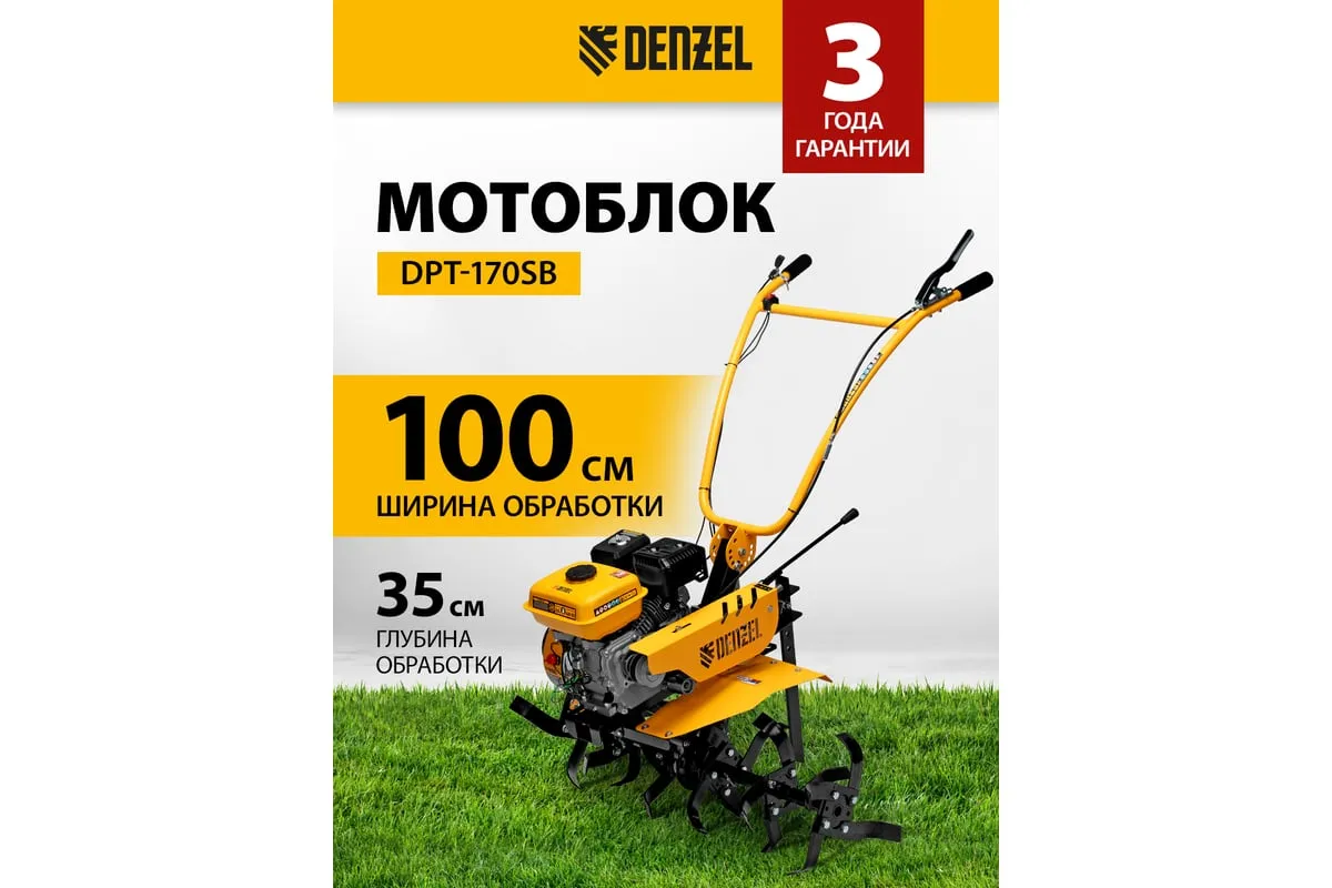 Мотоблок Denzel dpt-170sb предназначен для выполнения земляных работ: рыхления, вспахивания, прополки и других.