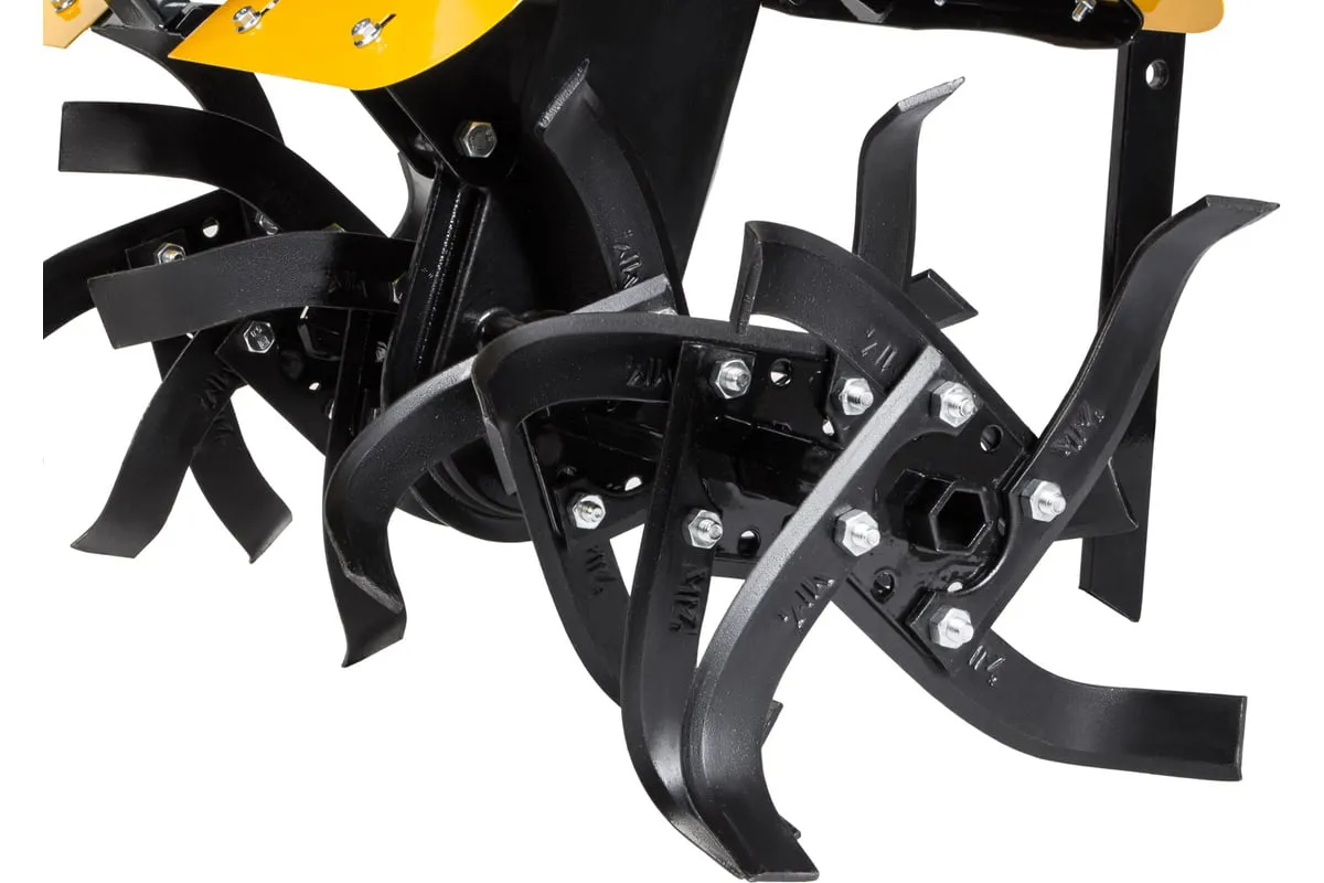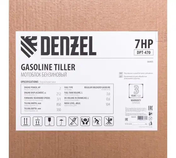 Мотоблок Denzel DPT-470 3В/1Н 56405 предназначен для работ с почвой на сельскохозяйственных участках. Оснащен мощным 4-х тактным бензиновым двигателем серии Long Life, который подходит для тяжелых задач, таких как вспашка целины и глинистой почвы площадью до 2 гектаров. Предусмотрены 3 скорости для движения вперед, что обеспечивает высокую скорость работы, и 1 скорость для движения назад, что позволяет вытаскивать агрегат при застревании в почве. Многофункциональность. Шкив отбора мощности служит для подключения дополнительного оборудования, что значительно расширяет спектр выполняемых мотоблоком задач.