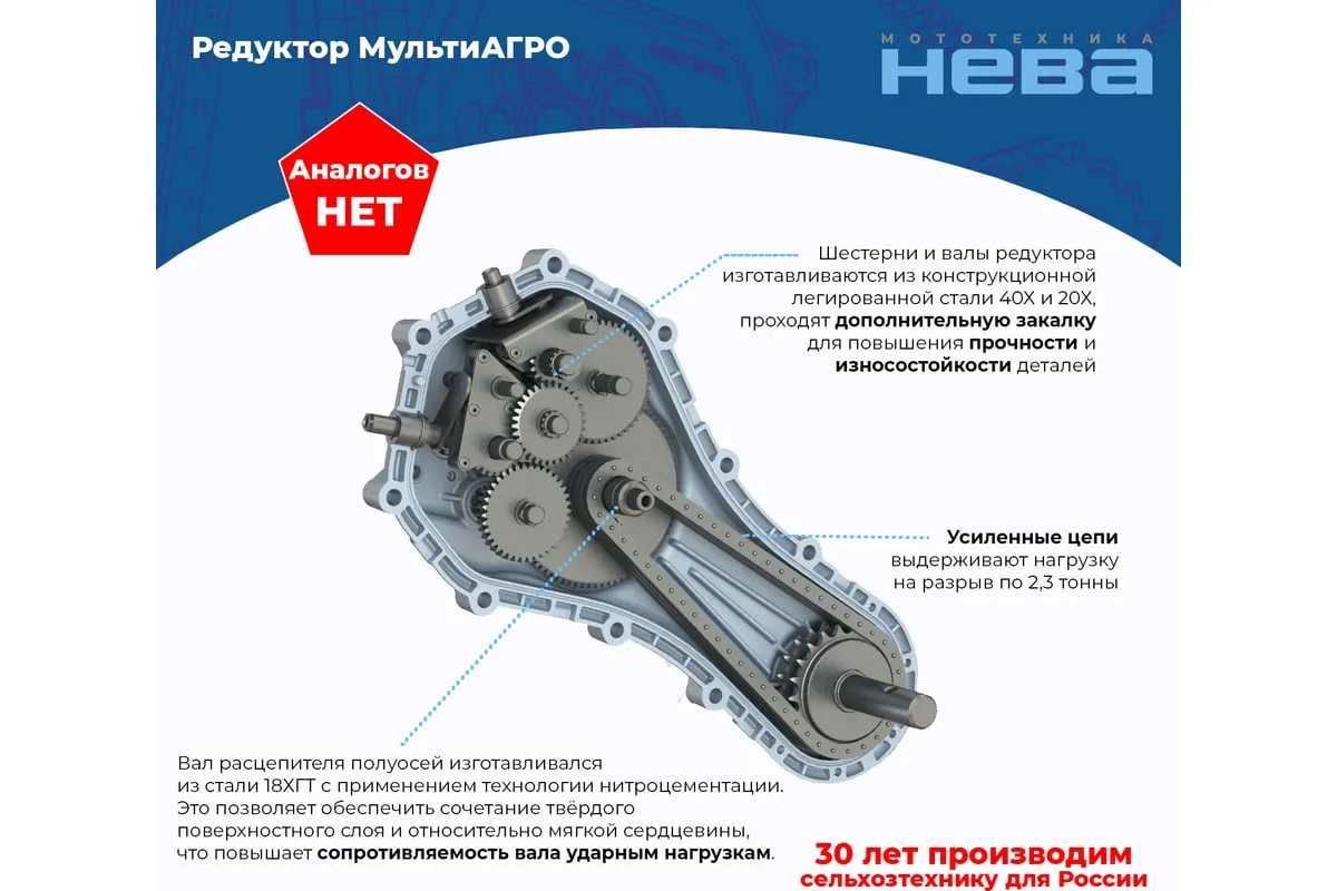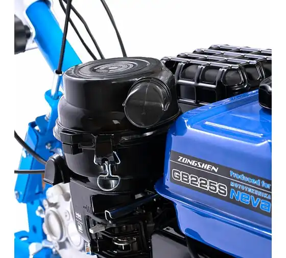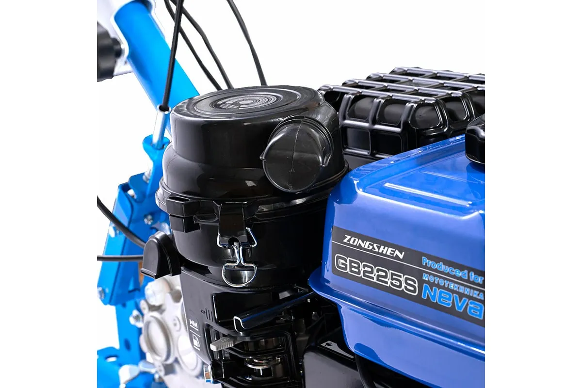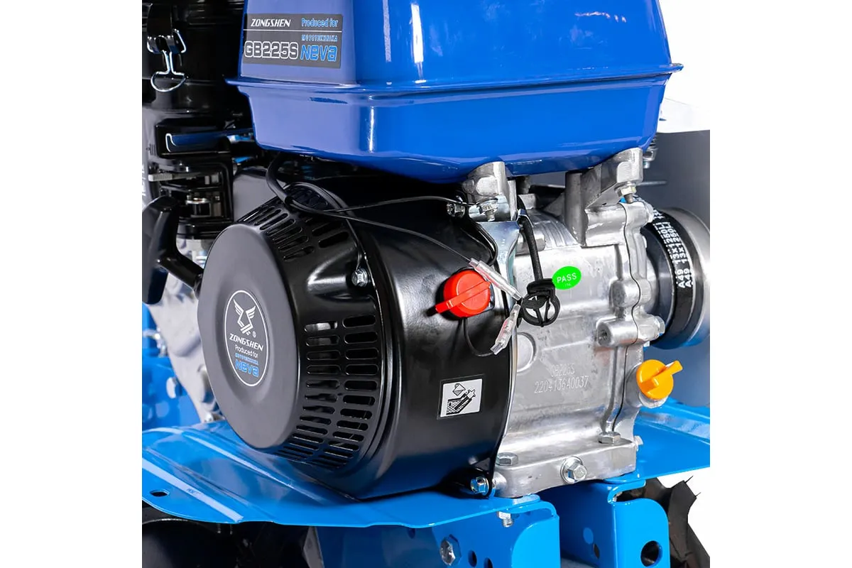 Мотоблок оснащен бензиновым двигателем Мототехника НЕВА GB225 — четырехтактный, одноцилиндровый двигатель с воздушным охлаждением и мощностью 7,5 л.с. Мотоблок комплектуется фирменными двигателями Мототехника НЕВА от 3 ведущих производителей: ZONGSHEN, RATIO, LIFAN, в связи с этим модификация двигателя может отличаться.