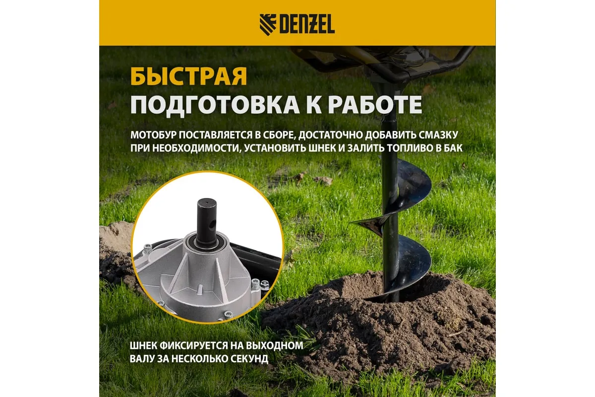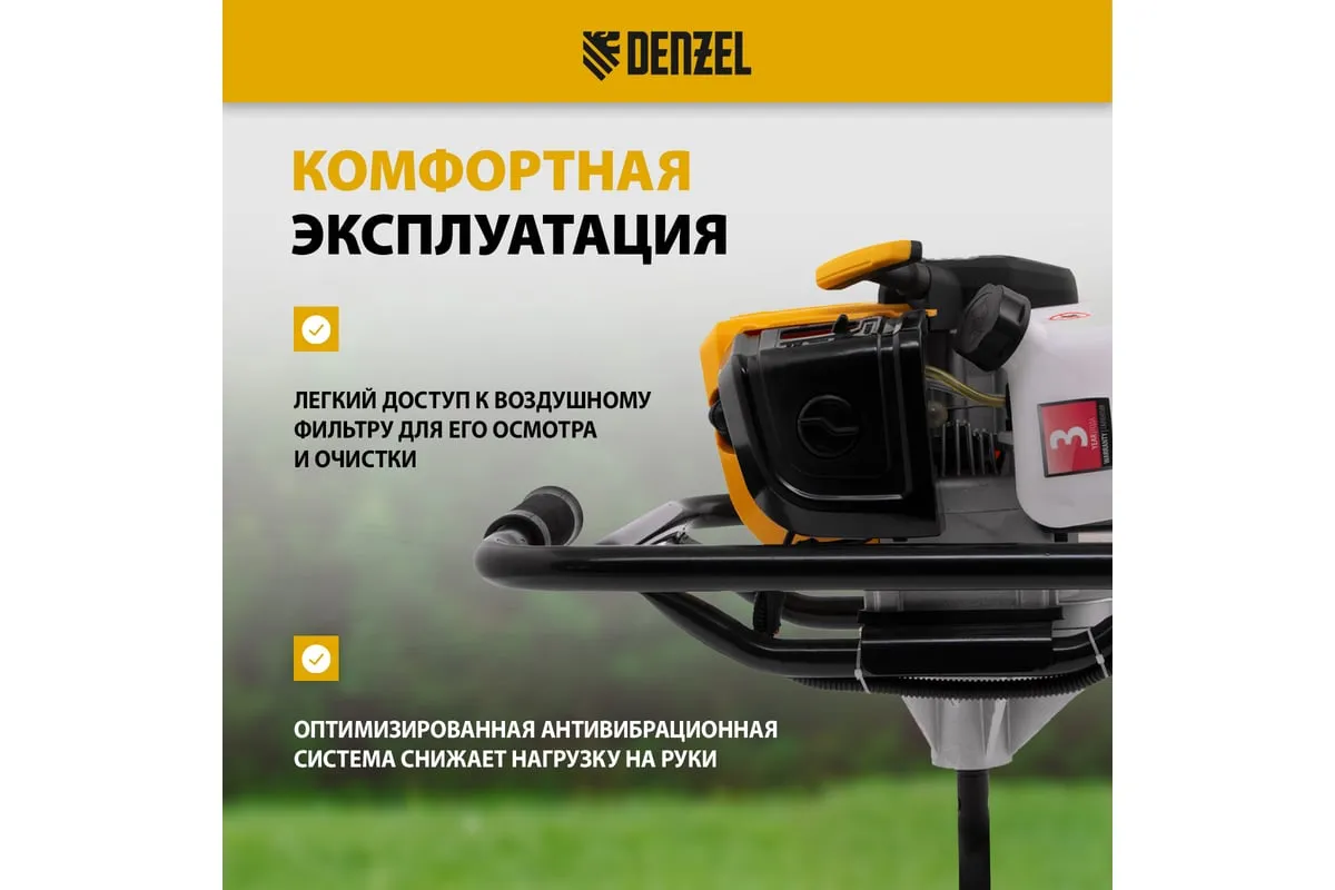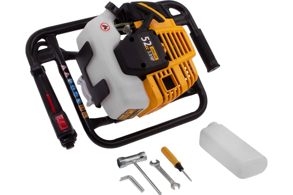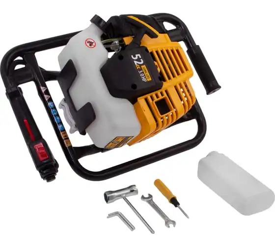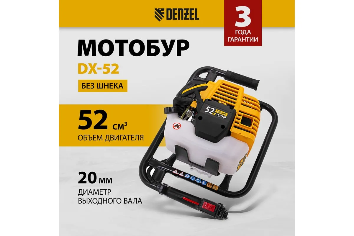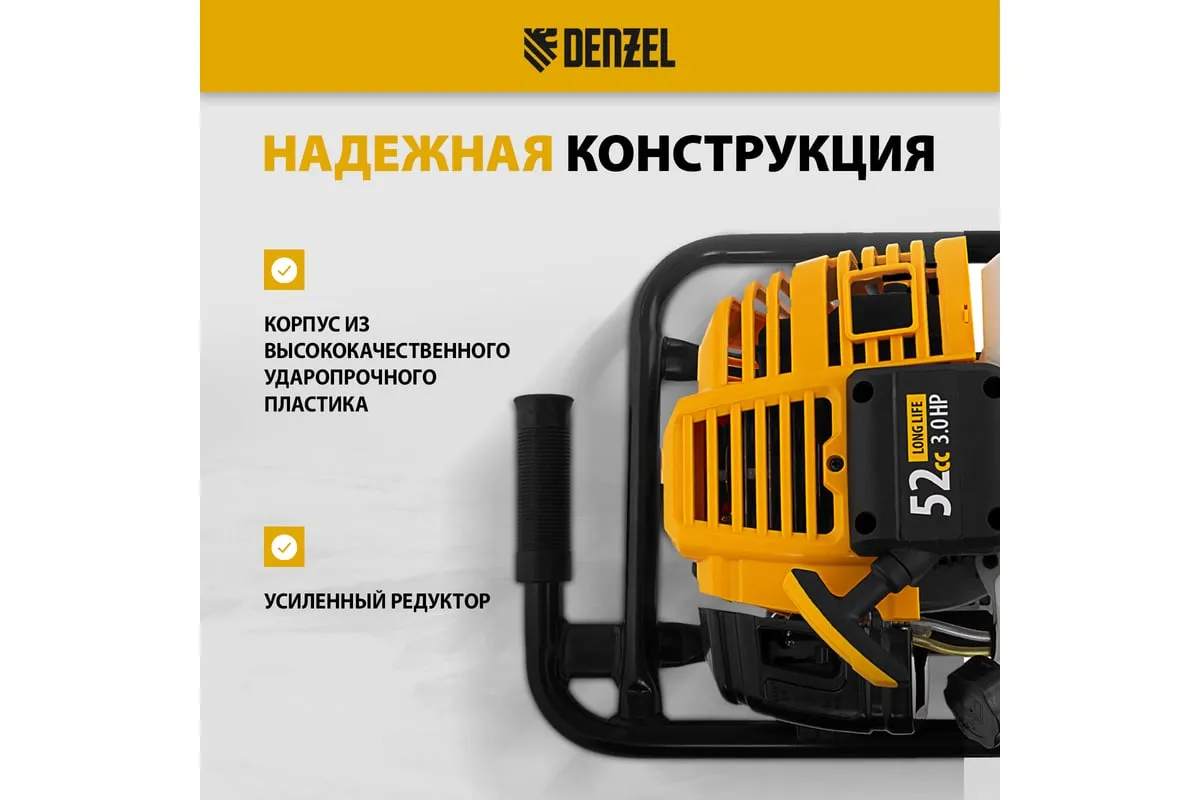 Мотобур Denzel DX-52 56001 с объемом двигателя 52 см3 и диаметром соединения 20 мм предназначен для получения отверстий и углублений во льду или в грунте максимальным диаметром 300 мм. Устройство будет полезно на строительной площадке, загородном участке, пригодится также во время зимней рыбалки.