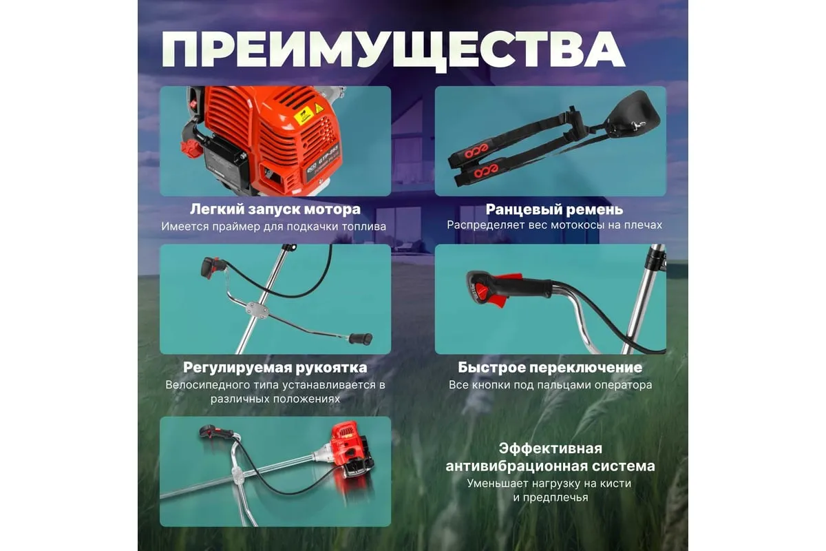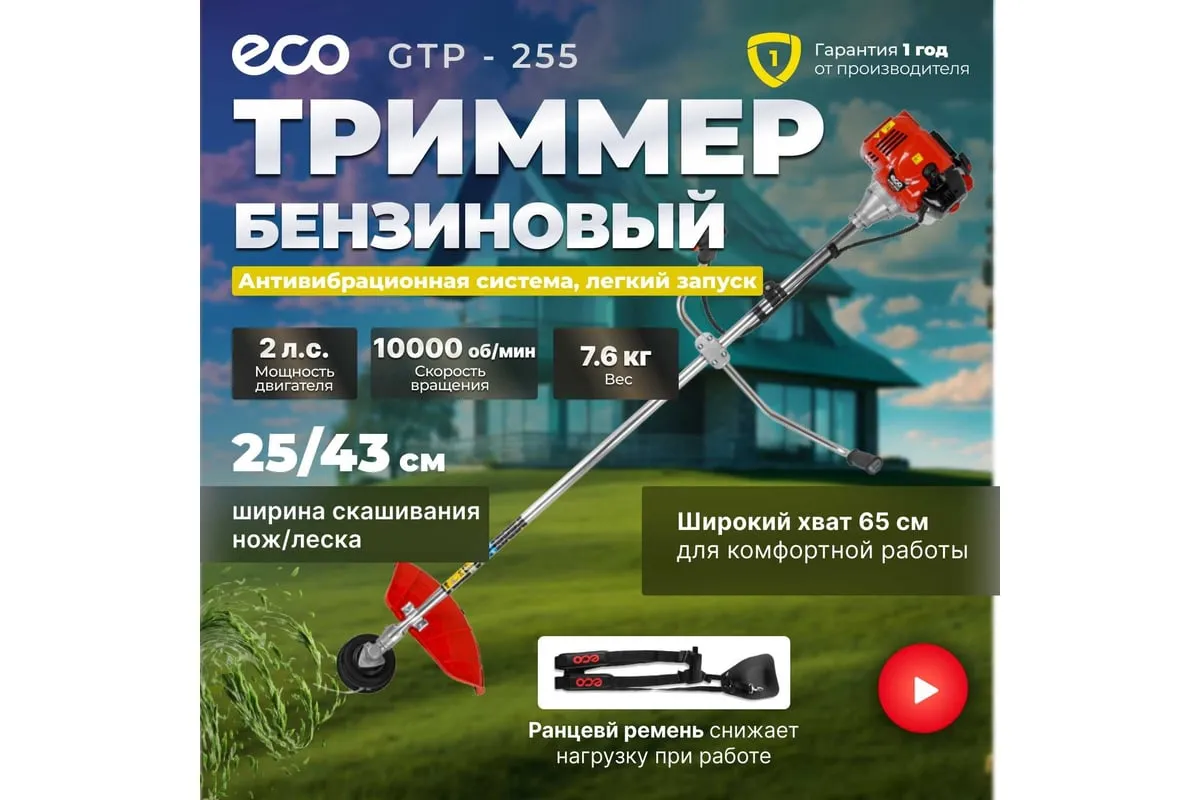 Мотокоса ECO GTP-255 Power Plus EC1551-5 - мощная и удобная модель для продвинутых пользователей, которые по достоинству оценят ее внушительный потенциал.