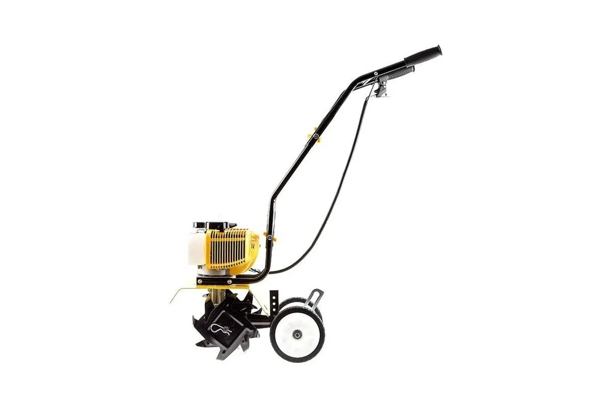 Мотокультиватор Champion GC252 предназначен для обработки небольших участков. Имеет 2-х тактный двигатель с воздушным охлаждением мощностью 1.9 л.с. Фрезы диаметром 225 мм рыхлят почву, что обогащает её кислородом. Ширина вспашки составляет 30 см. Колеса облегчают перемещение культиватора по участку.